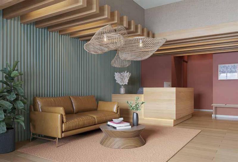 O condomínio conta ainda com lavanderia profissional, espaço delivery e depósito compartilhado. O sistema de segurança é completo, incluindo portaria, monitoramento por câmeras, controle de acesso e alarmes. Sustentabilidade e acessibilidade também são diferenciais, com coleta seletiva, reaproveitamento de água da chuva, iluminação com sensores de presença e rampas de acesso em todas as áreas comuns.