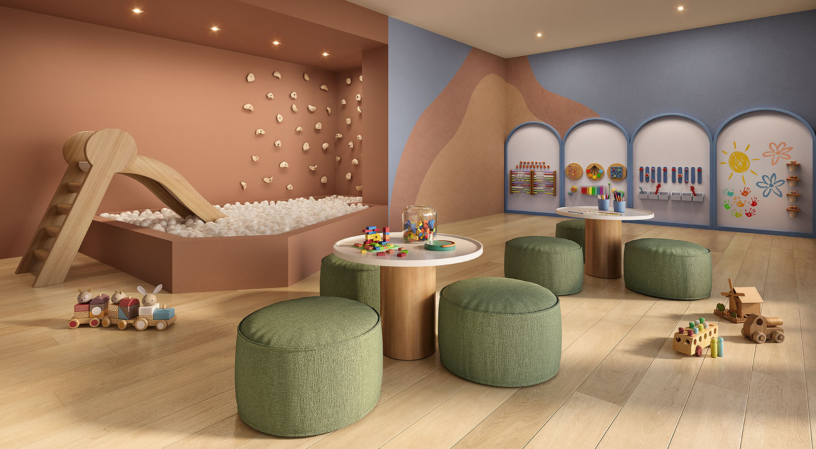 - Opções de 2 e 3 quartos com suítes