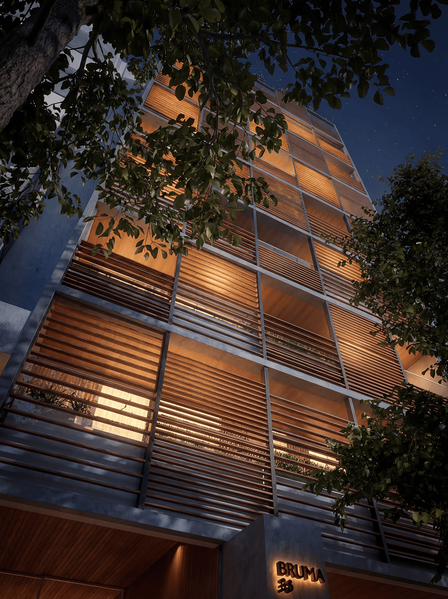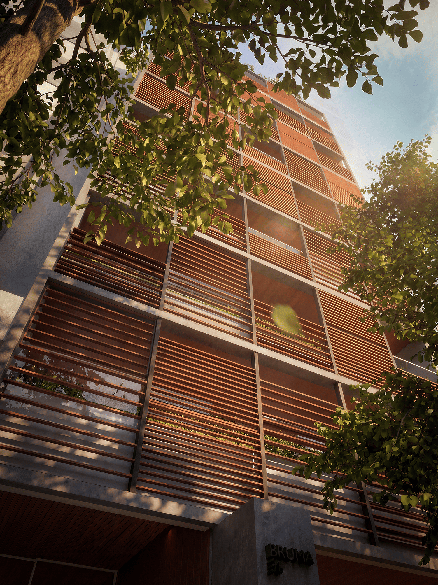 Desenvolvido pela Mozak, o Bruma apresenta arquitetura assinada pelo escritório Jacobsen Arquitetura, com projeto de Flávio Bassan. O edifício se destaca pela proposta de uma unidade por andar, garantindo maior exclusividade e privacidade aos moradores. A composição estética valoriza o uso de madeira e concreto, com linguagem contemporânea e integração com o entorno.
