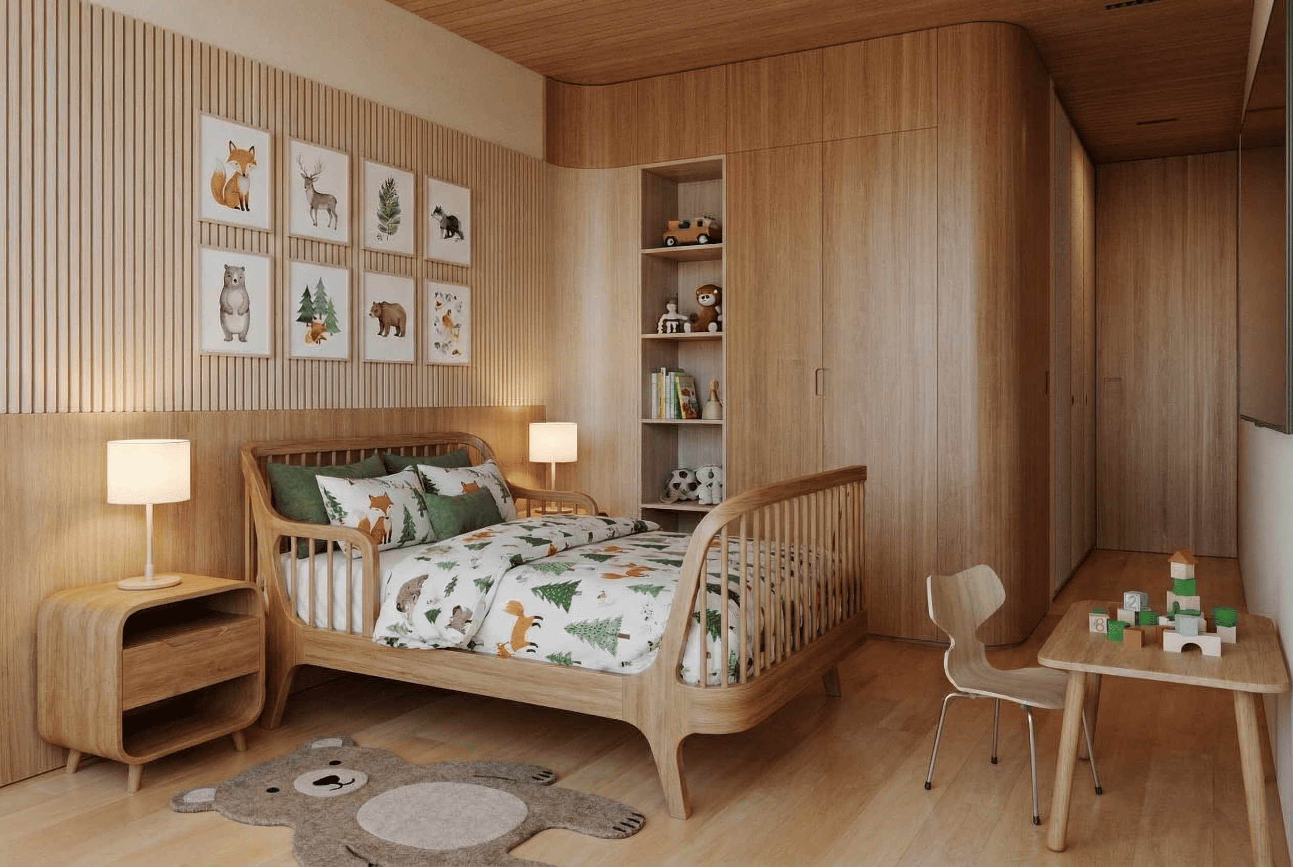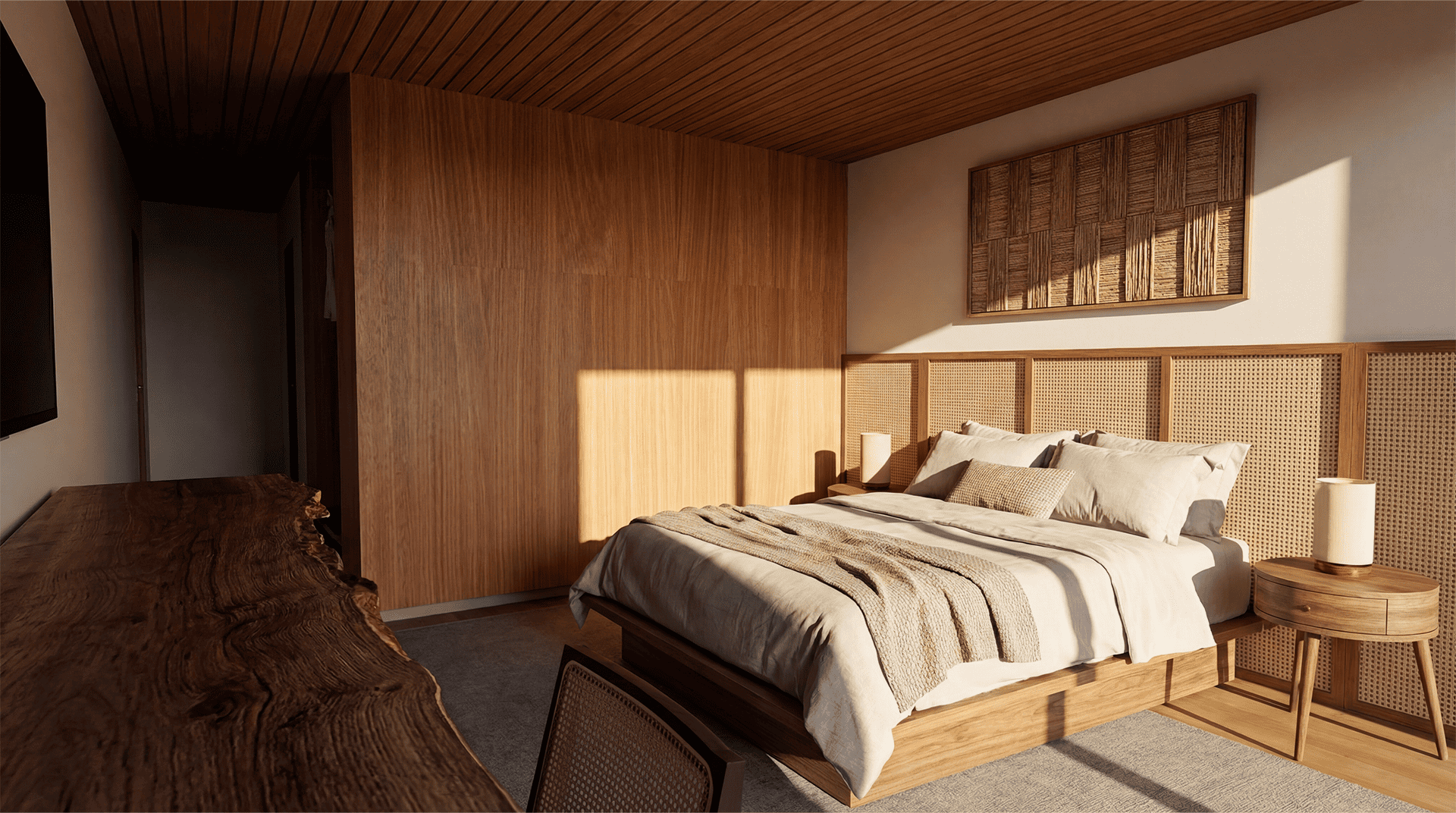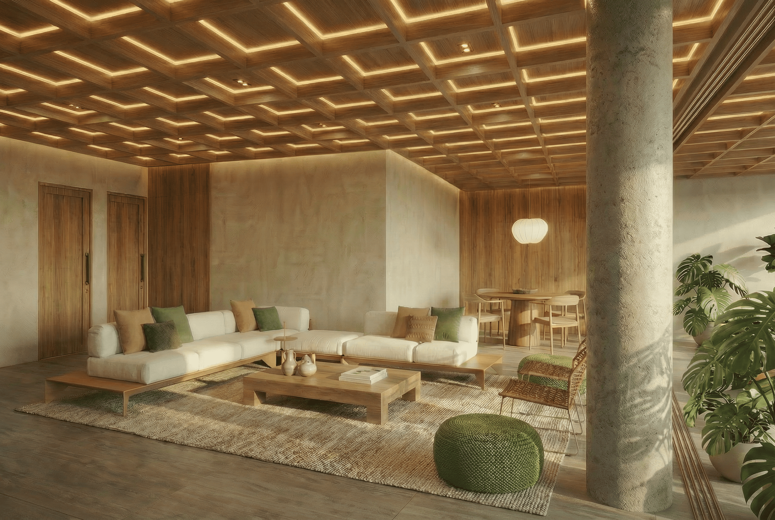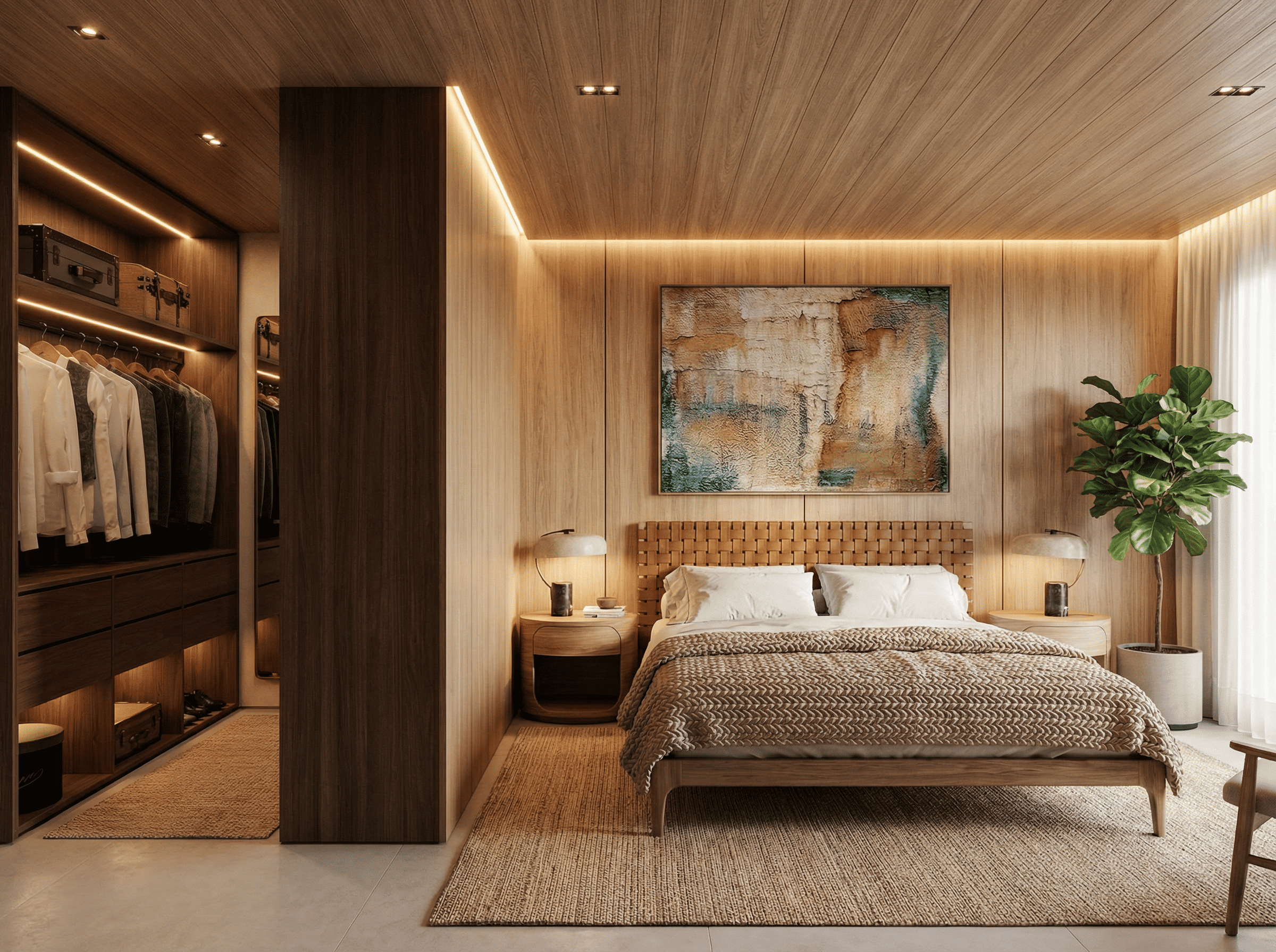 - Acabamentos em porcelanato e madeira
