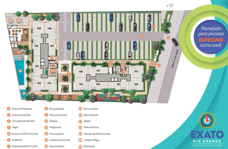 O Exato Rio Grande é o empreendimento perfeito para quem deseja morar em um local bem localizado, com fácil acesso e toda a comodidade de estar próximo às principais conveniências da cidade. Situado a apenas 5 minutos do Largo da Taquara, você terá ao seu redor supermercados, bancos, comércio variado e opções de lazer.