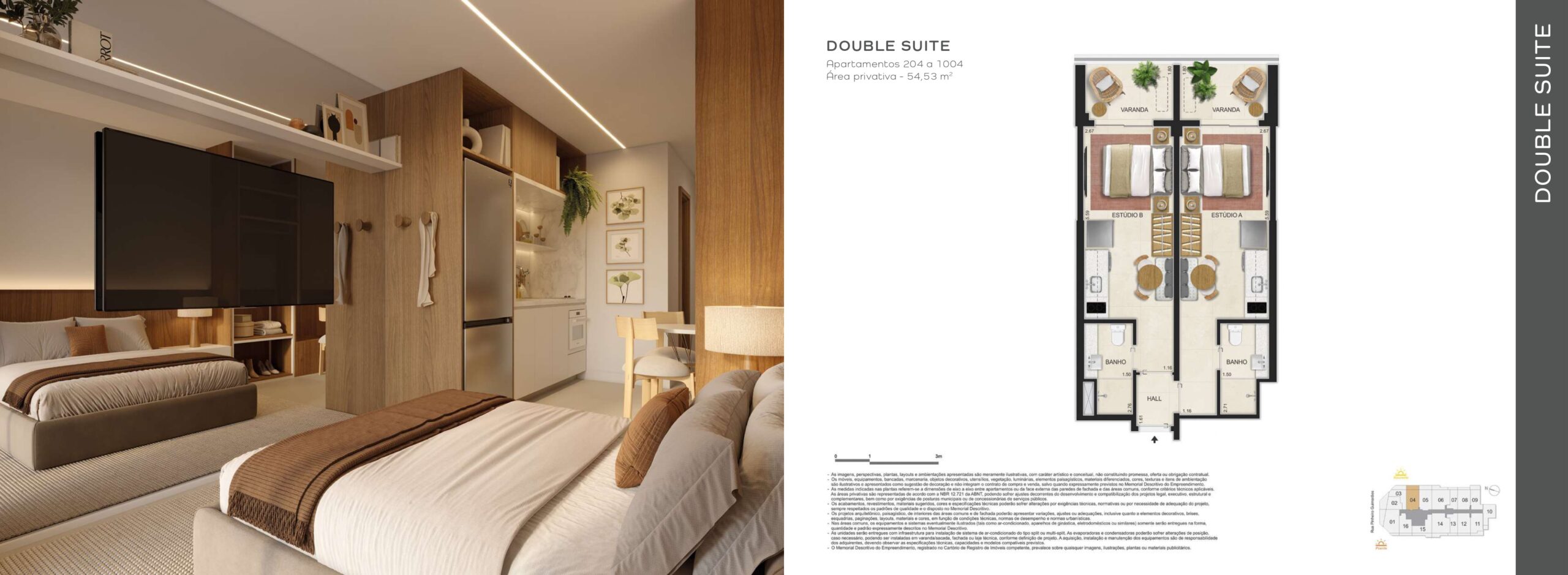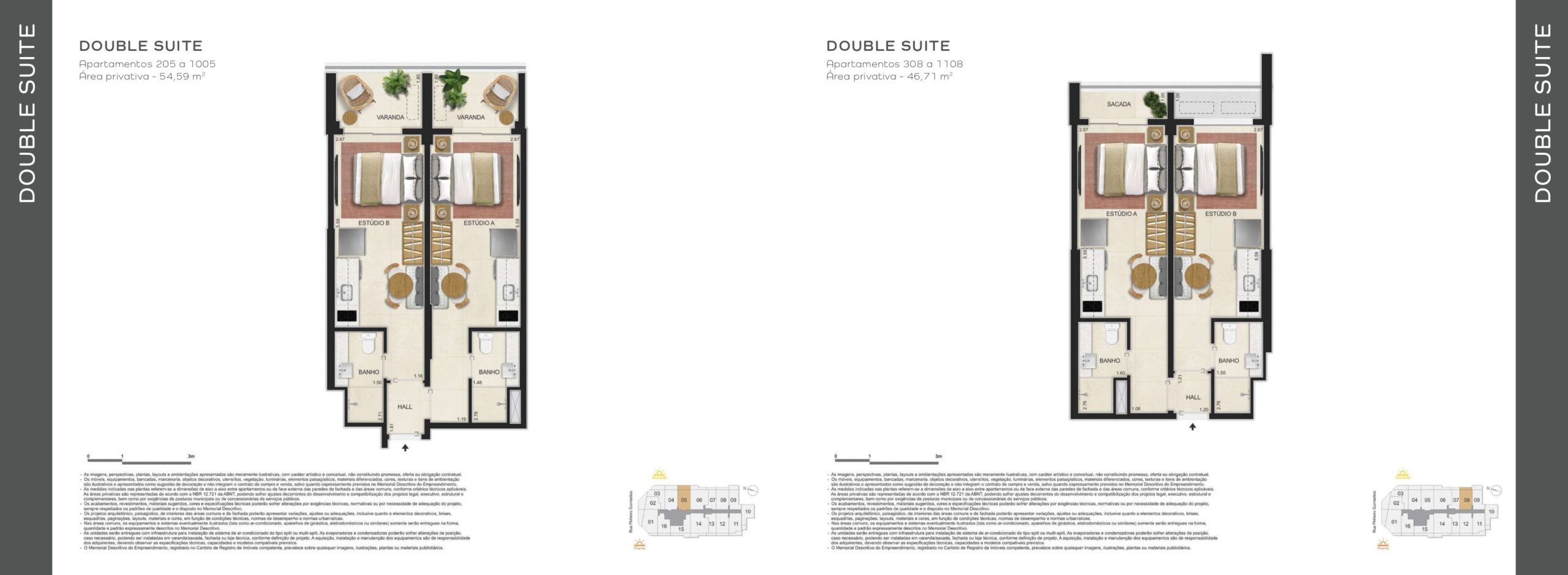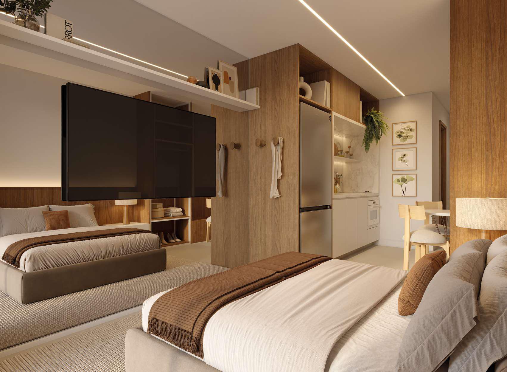 - Dormitórios: Studios, Doubles, 1 e 2 quartos espaçosos com design moderno
