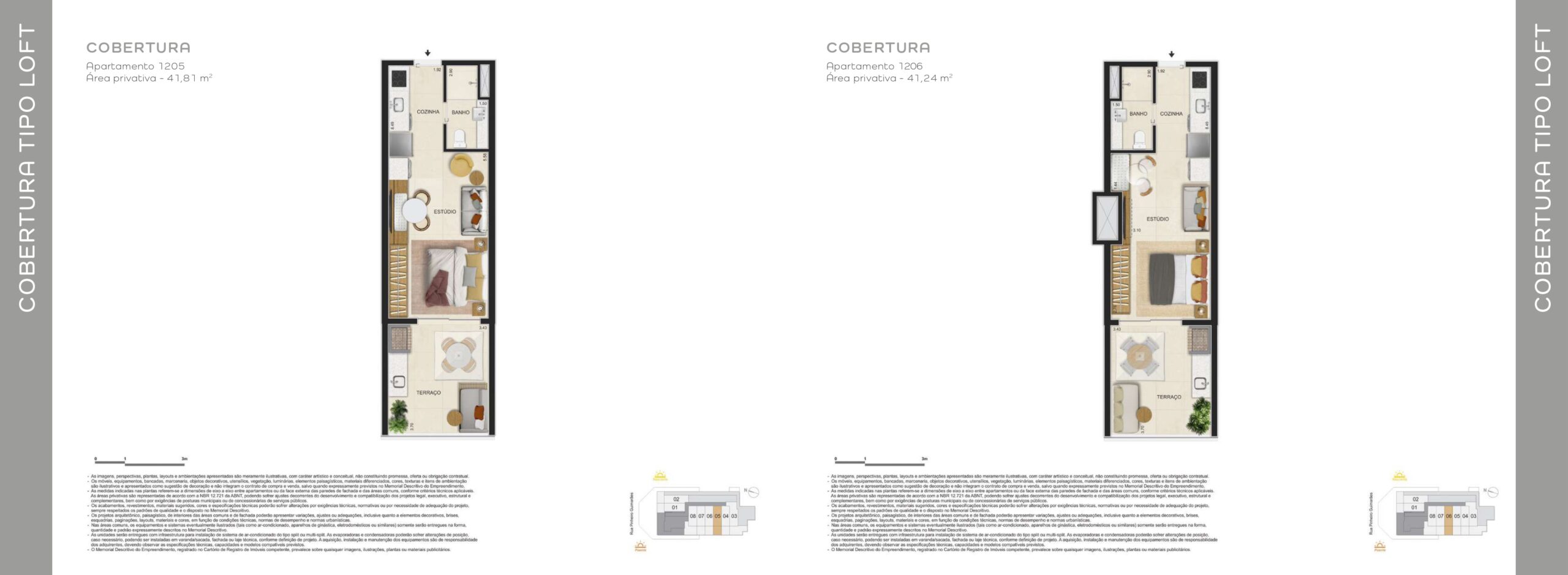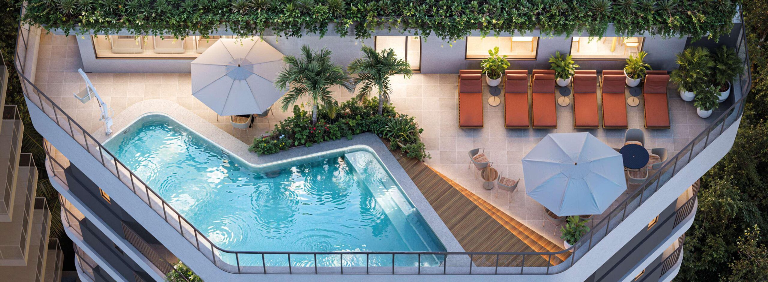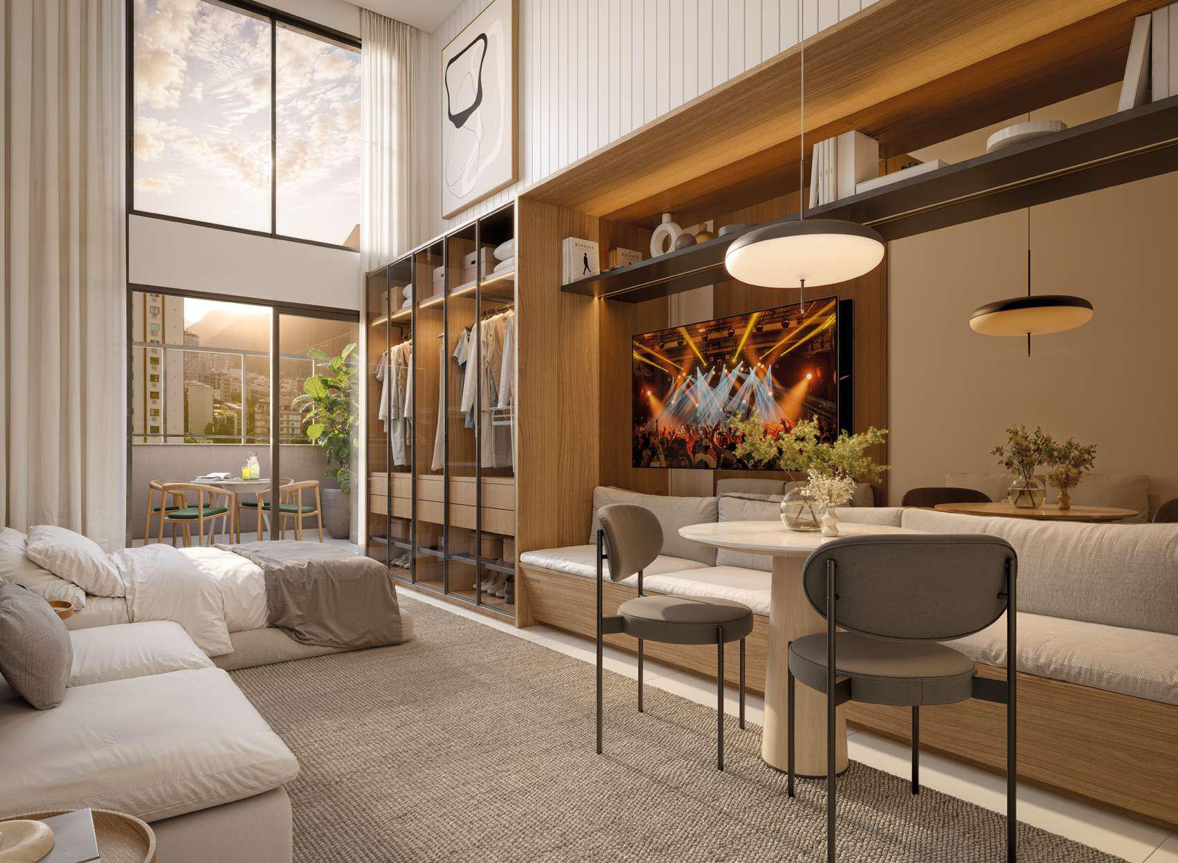 As coberturas ampliam o padrão do empreendimento, oferecendo áreas mais generosas e configurações que valorizam a exclusividade. São unidades voltadas para quem busca mais espaço e uma experiência residencial diferenciada em Botafogo.