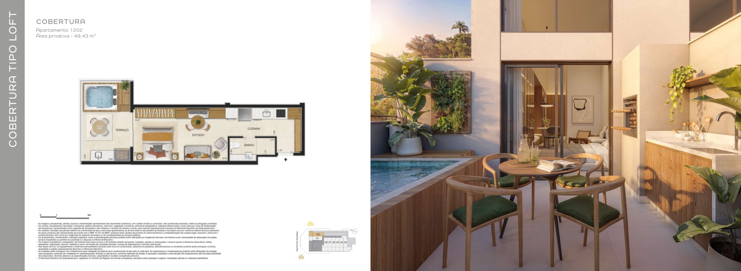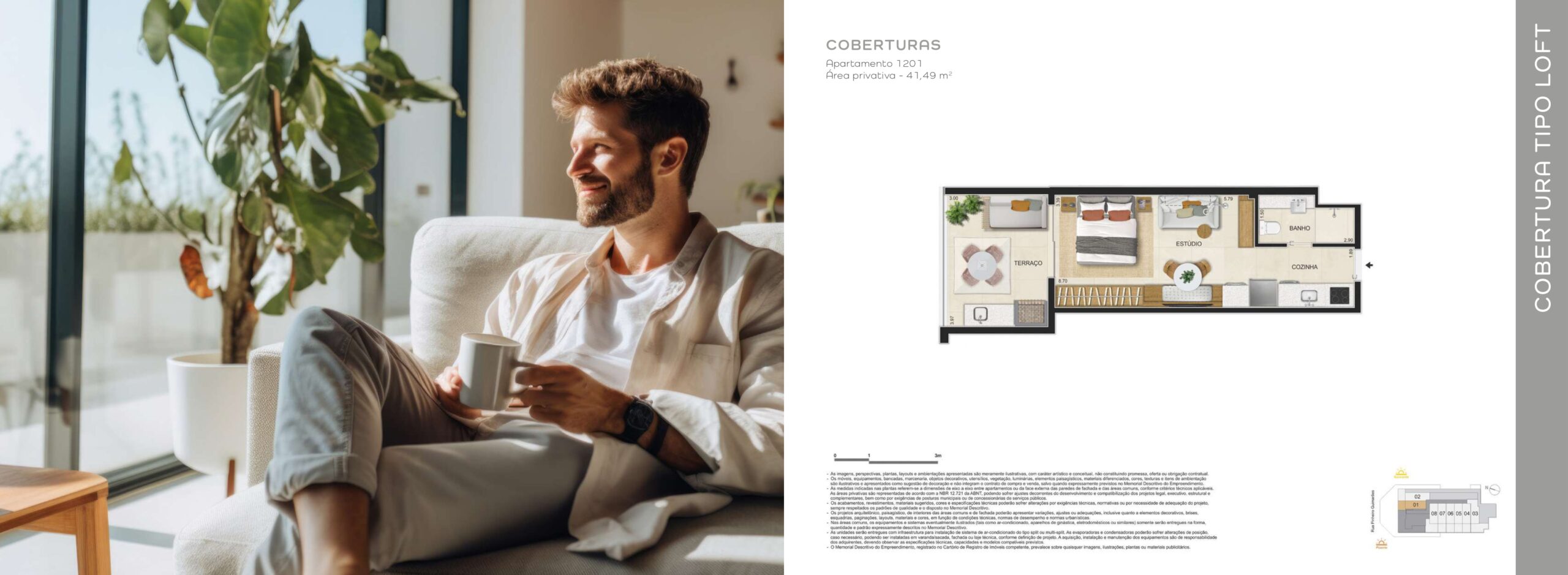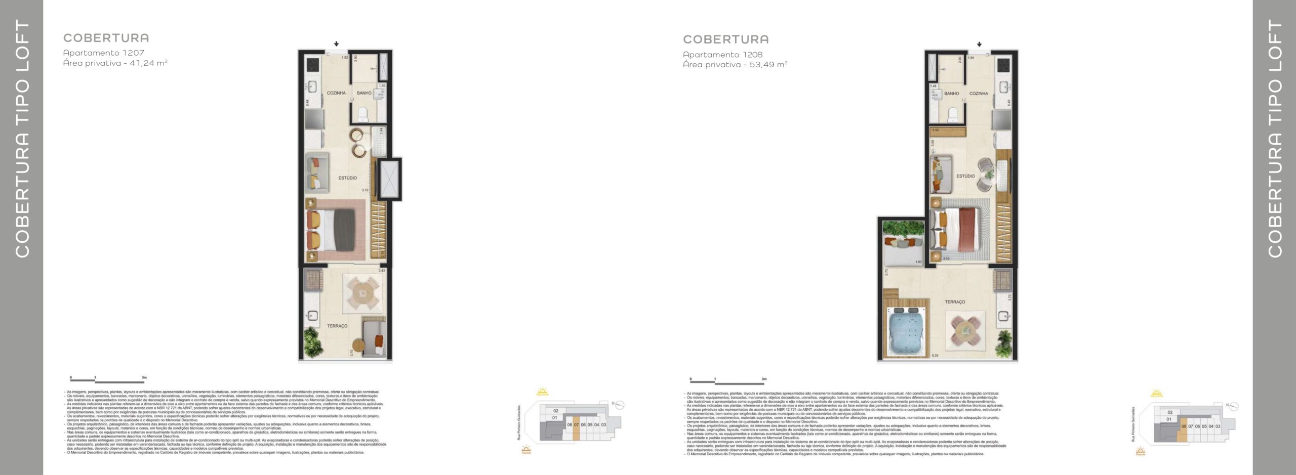 As coberturas ampliam o padrão do empreendimento, oferecendo áreas mais generosas e configurações que valorizam a exclusividade. São unidades voltadas para quem busca mais espaço e uma experiência residencial diferenciada em Botafogo.