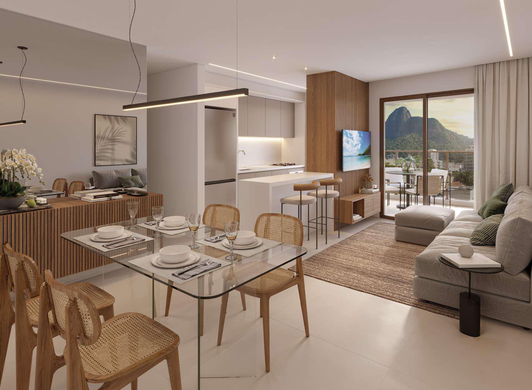 Os apartamentos do Guima Botafogo apresentam plantas bem distribuídas, com ambientes integrados e suítes que garantem privacidade. Os espaços foram planejados para favorecer o conforto no dia a dia, com atenção à ventilação natural e à iluminação dos ambientes.