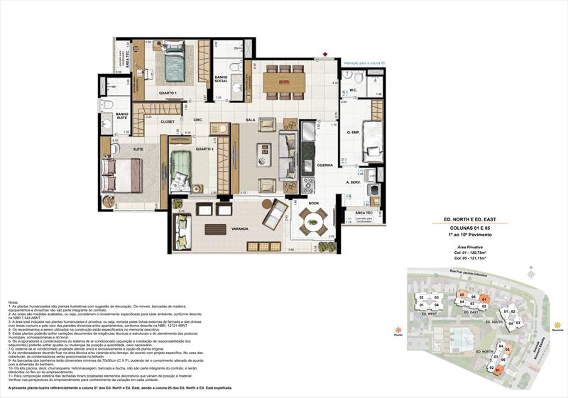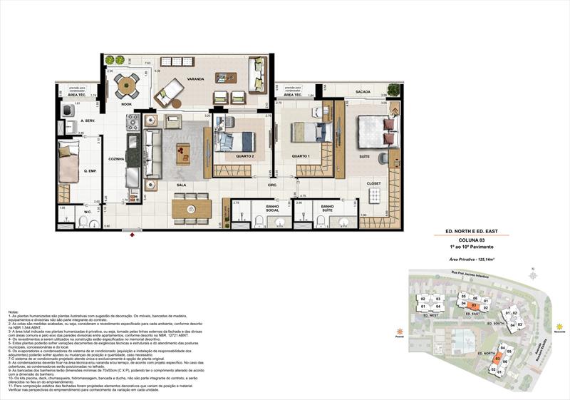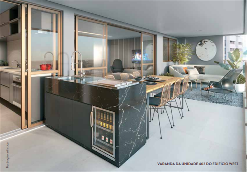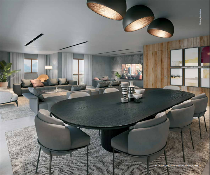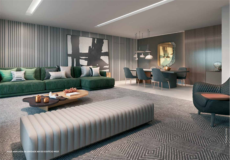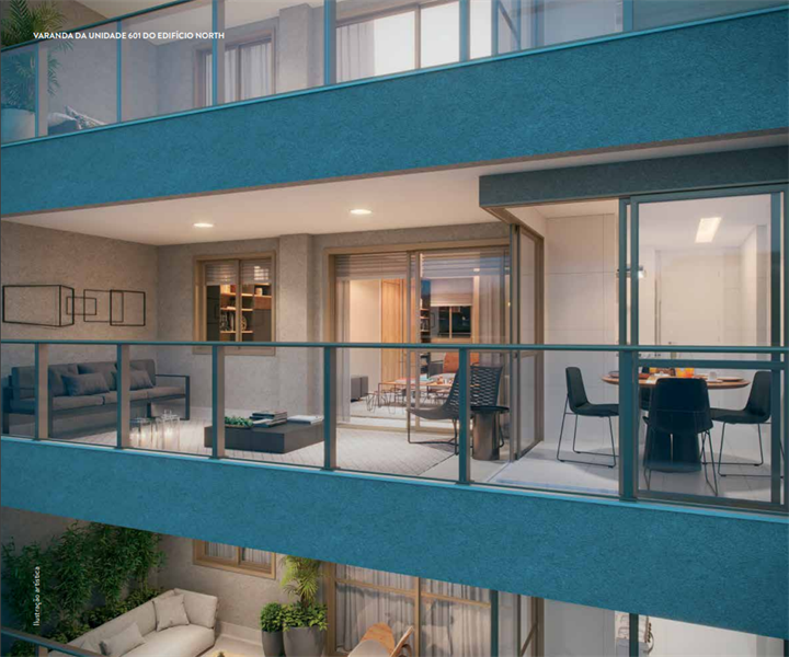 Os 192 apartamentos tipo contam com plantas modernas e funcionais, variando de 119 m² a 187 m². As unidades possuem 3 a 4 quartos, sendo até 2 suítes com espaço para closet, além de salas integradas de estar e jantar que se conectam a varandas com vista privilegiada. A cozinha dispõe de copa e acesso à área de serviço com dependência completa. Cada unidade conta ainda com vagas de garagem e acesso total às áreas comuns.