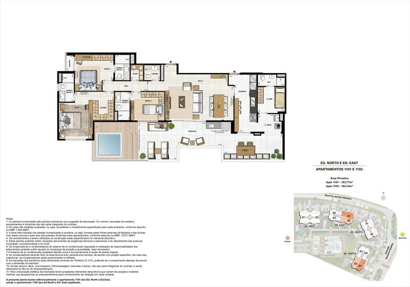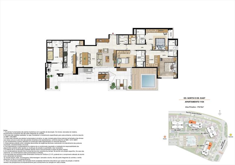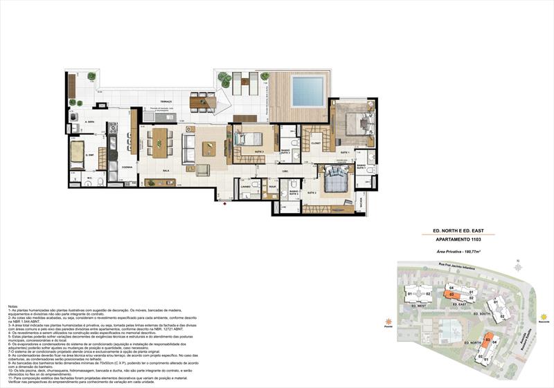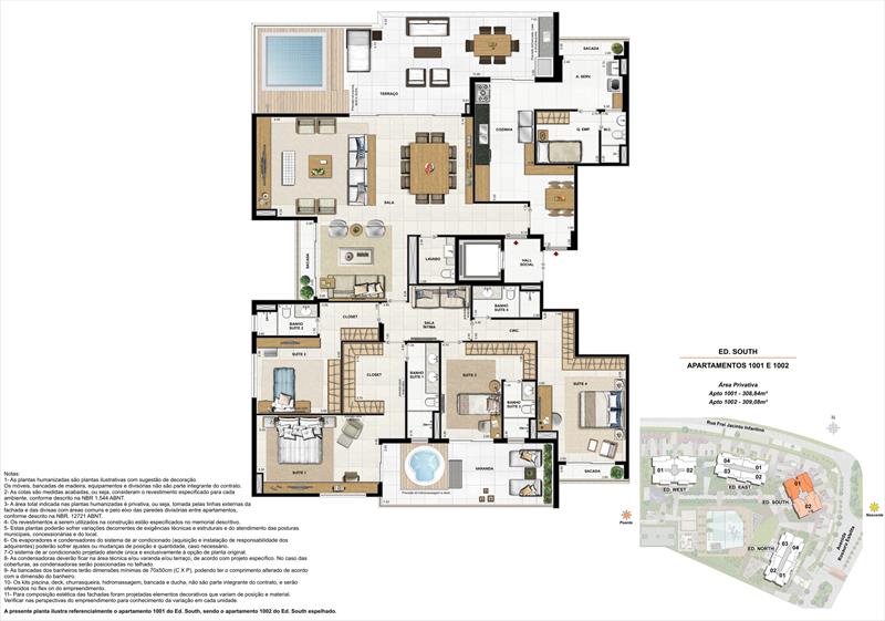 As 12 coberturas lineares oferecem até 309 m², distribuídos em ambientes sofisticados e bem planejados. Cada unidade possui 4 suítes amplas com espaço para closet, além de salas generosas e cozinha integrada com copa e área de serviço completa. O destaque fica para o terraço com piscina, churrasqueira e deck, além da varanda com hidromassagem. As coberturas contam ainda com 4 vagas de garagem e ambientes pensados para proporcionar exclusividade e lazer privativo.