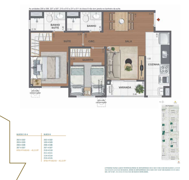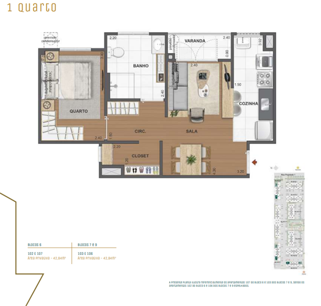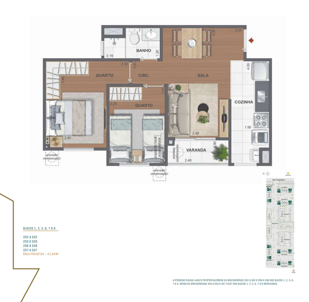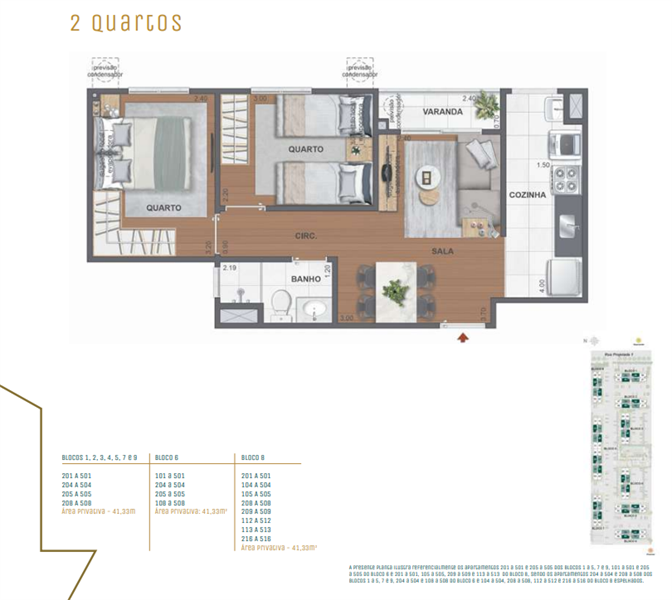 Os apartamentos tipo possuem área interna a partir de 42 m², com plantas de 2 quartos (opção de suíte), ótima iluminação natural e acabamentos de alto padrão. O layout inteligente garante o máximo aproveitamento dos espaços, evitando áreas ociosas e garantindo maior funcionalidade no dia a dia. Os moradores ainda poderão personalizar a planta, escolhendo acabamentos e ajustes que transformam o imóvel em uma extensão de seu estilo de vida.
