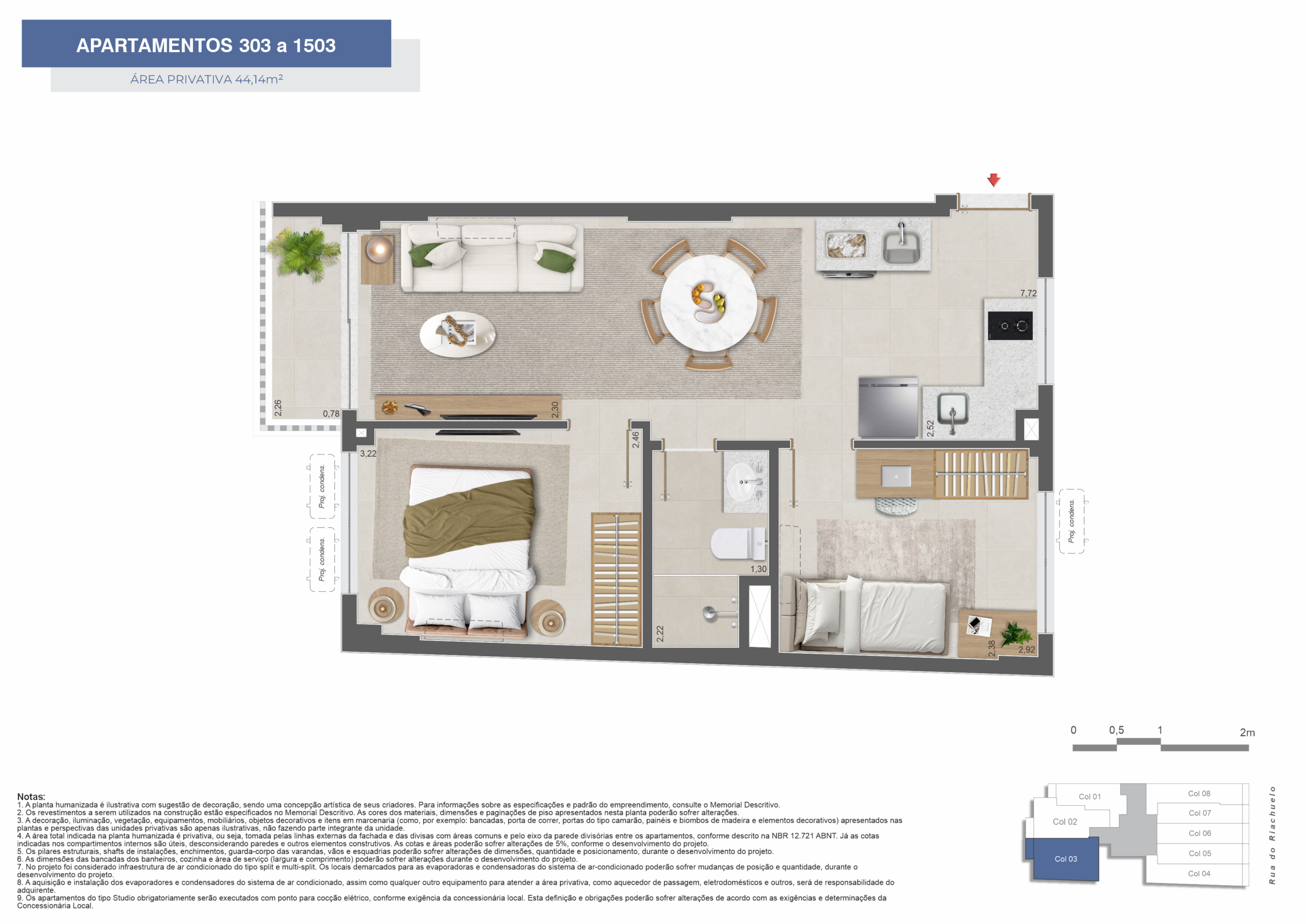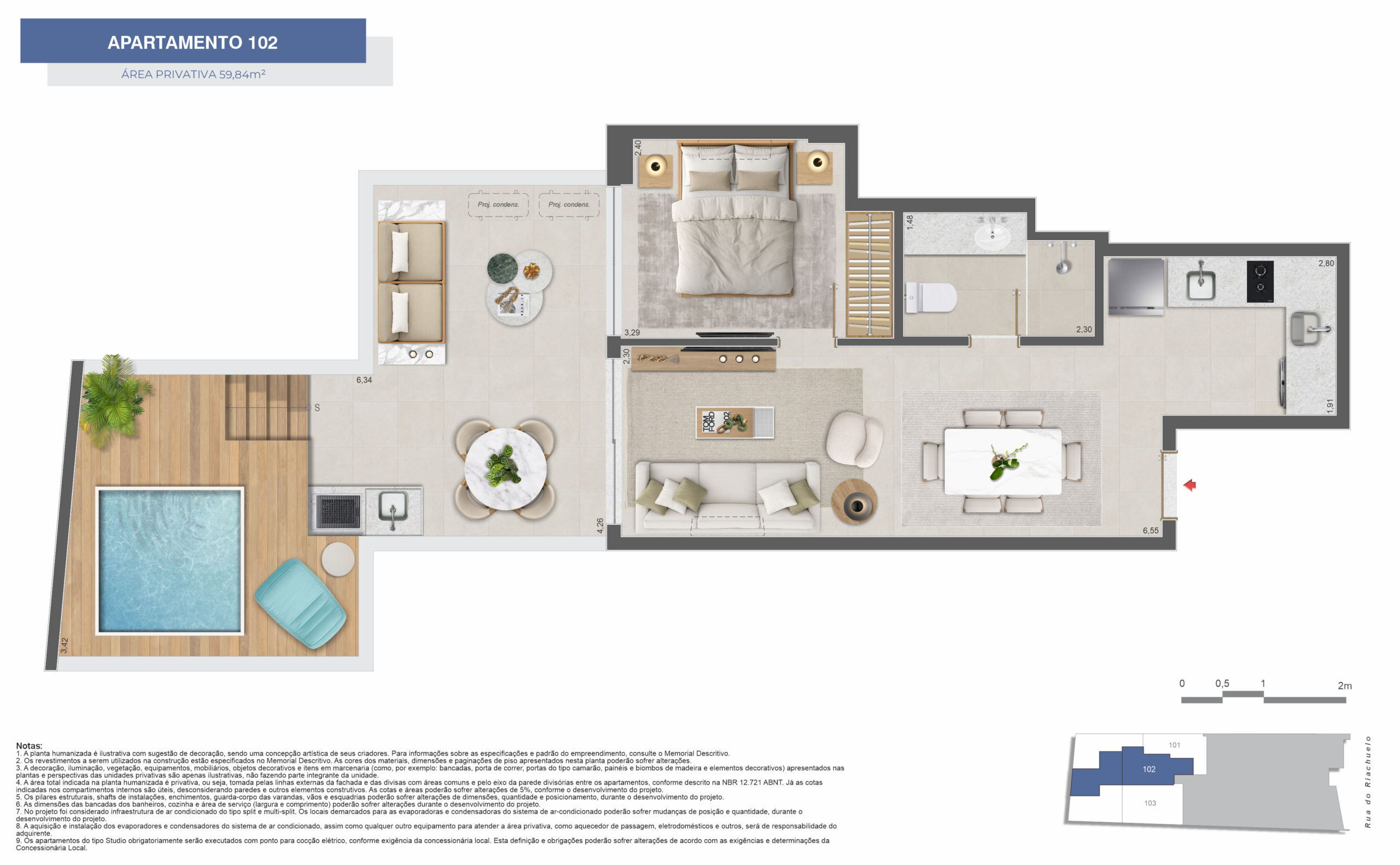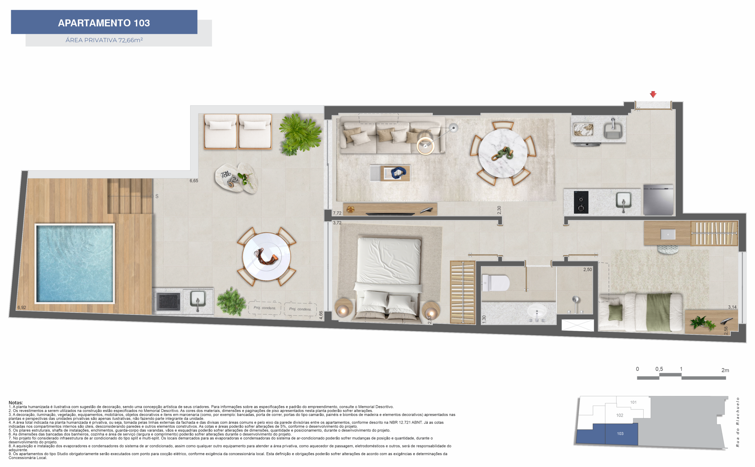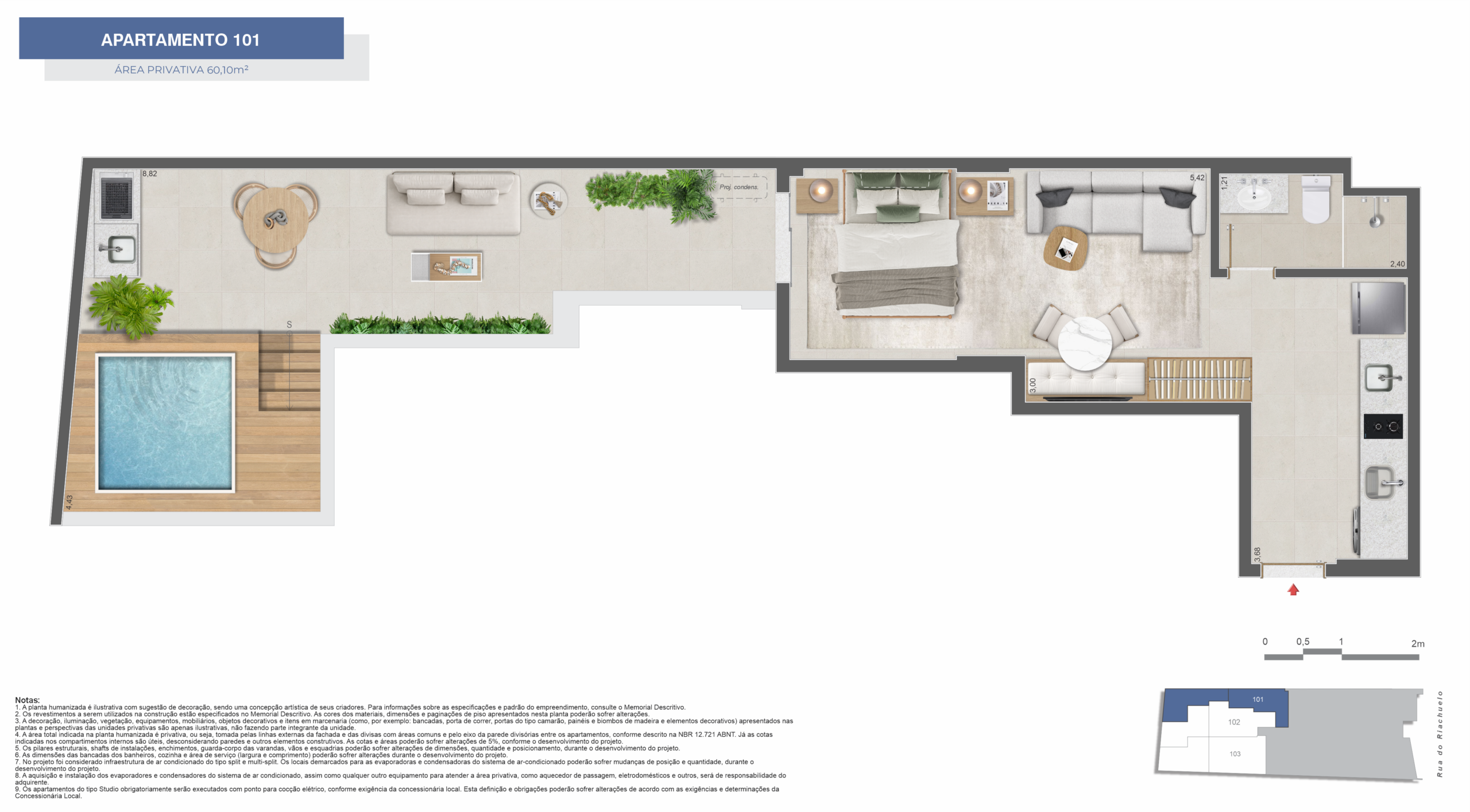 • Dormitórios: Studios 1 e 2 quartos espaçosos com design moderno