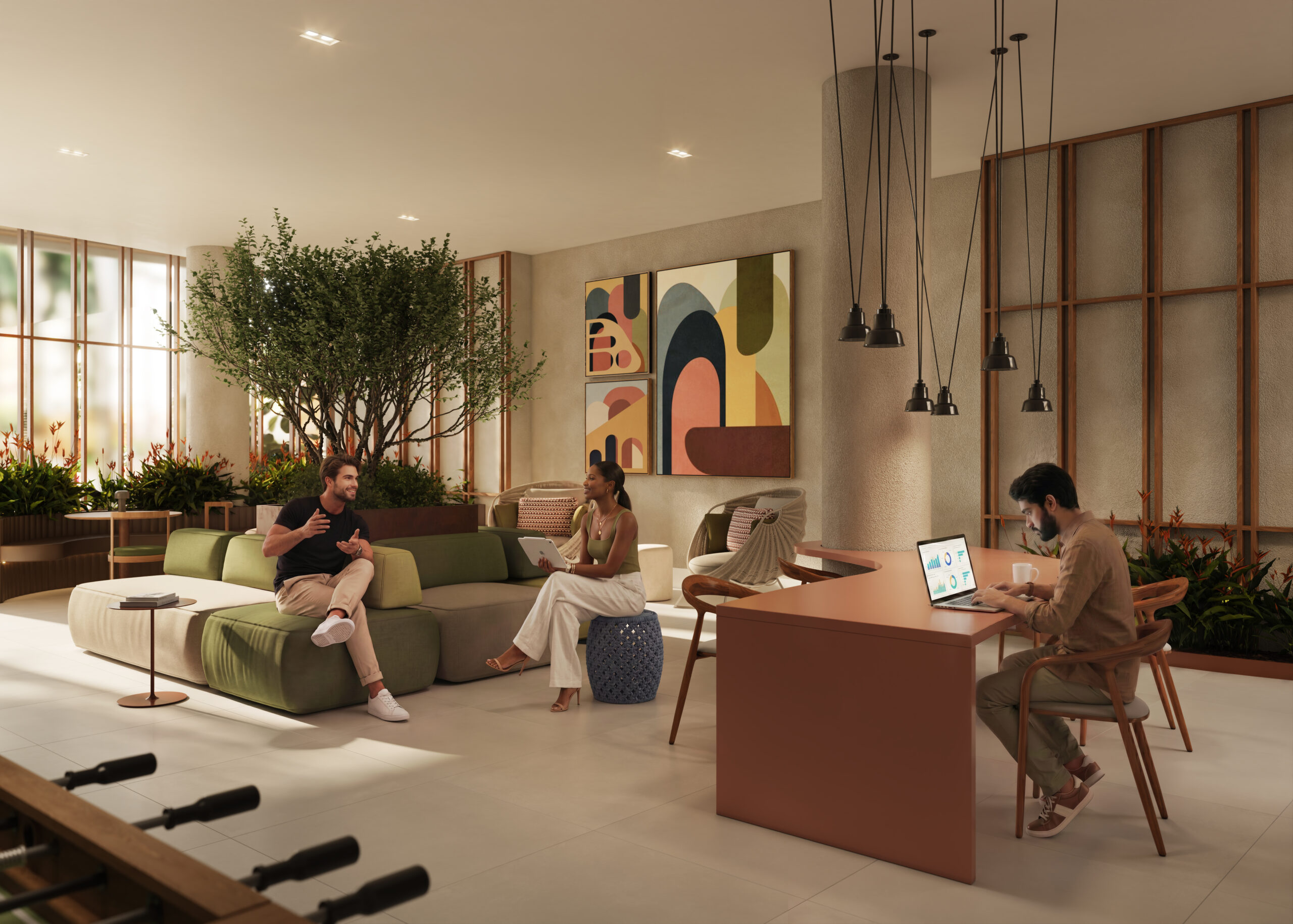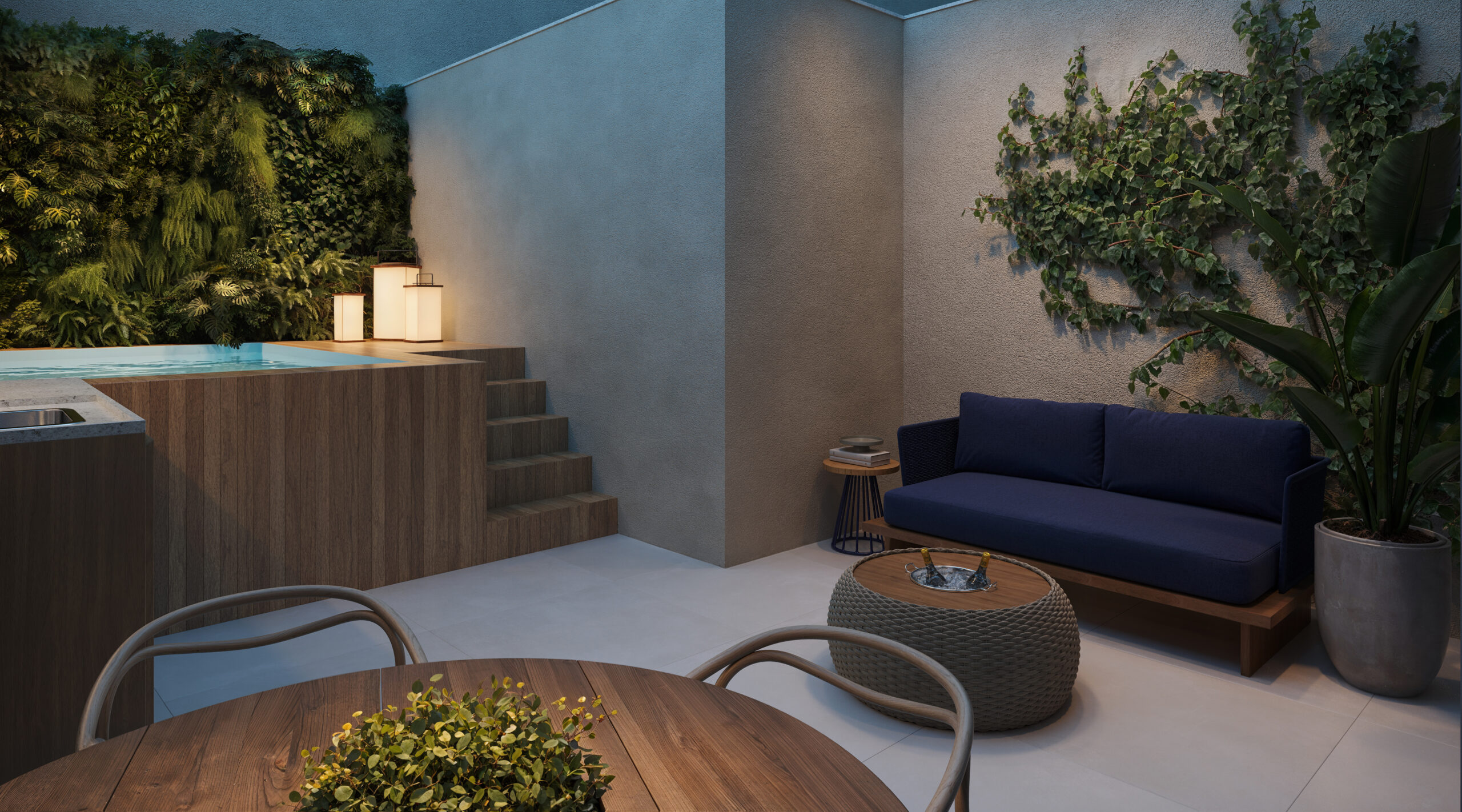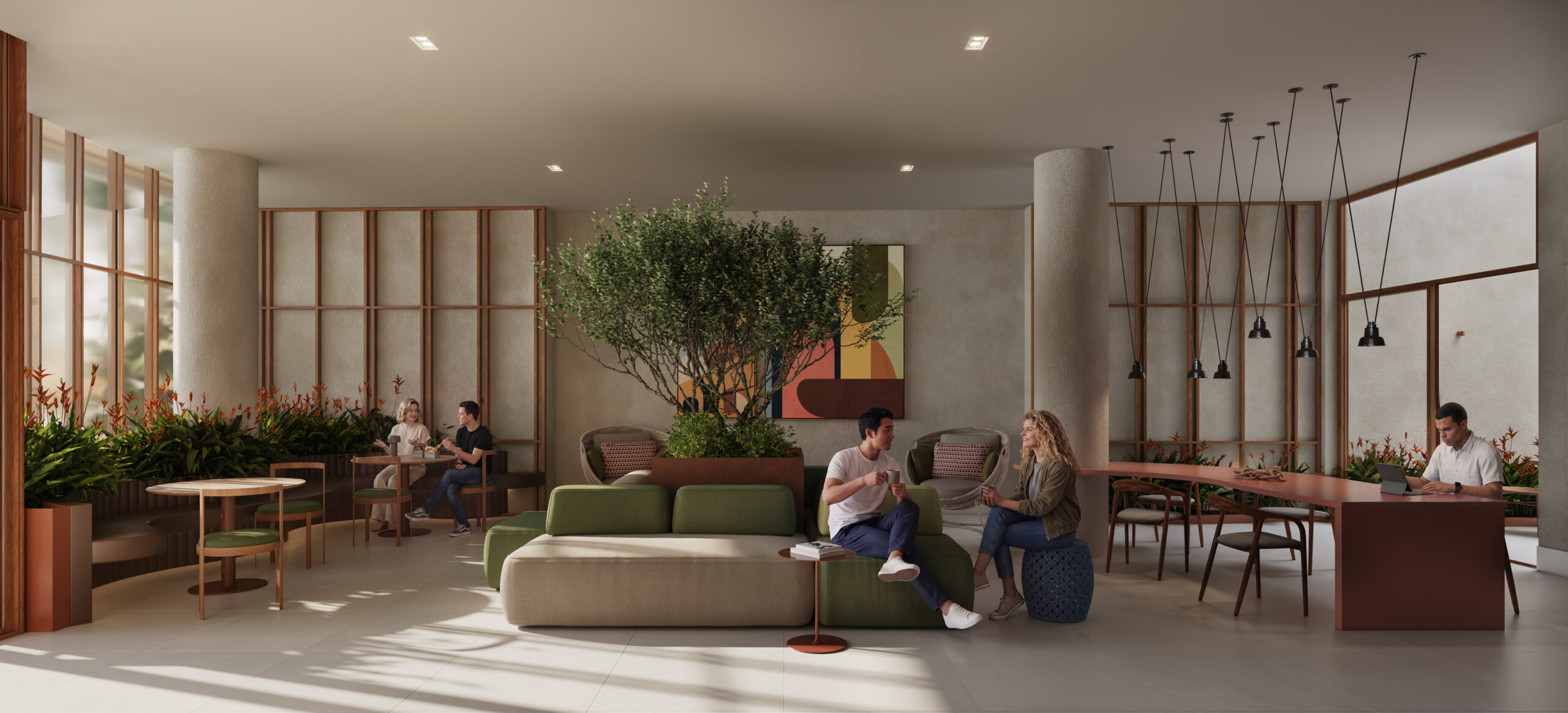 As unidades garden contam com áreas externas que ampliam as possibilidades de uso dos ambientes. Essa tipologia é indicada para quem busca mais privacidade e flexibilidade dentro de um projeto compacto.