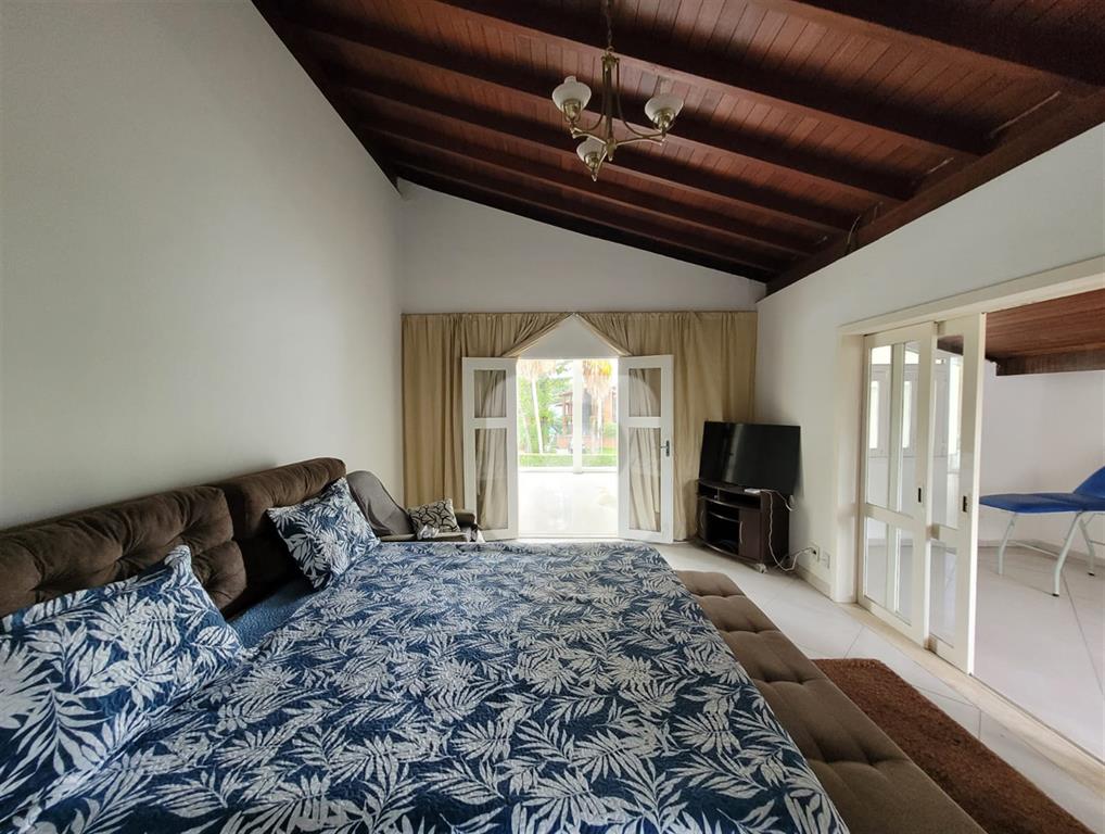 A área de lazer da casa possui piscina, sauna à vapor e seca churrasqueira, sala de ginástica, garagem para 4 carros.