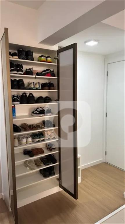 A sala conta ainda com uma sapateira planejada e discreta, enquanto um dos quartos possui um trocador de bebê inteligente, desenvolvido para também funcionar como mesa de escritório, atendendo tanto famílias quanto quem trabalha em home office.