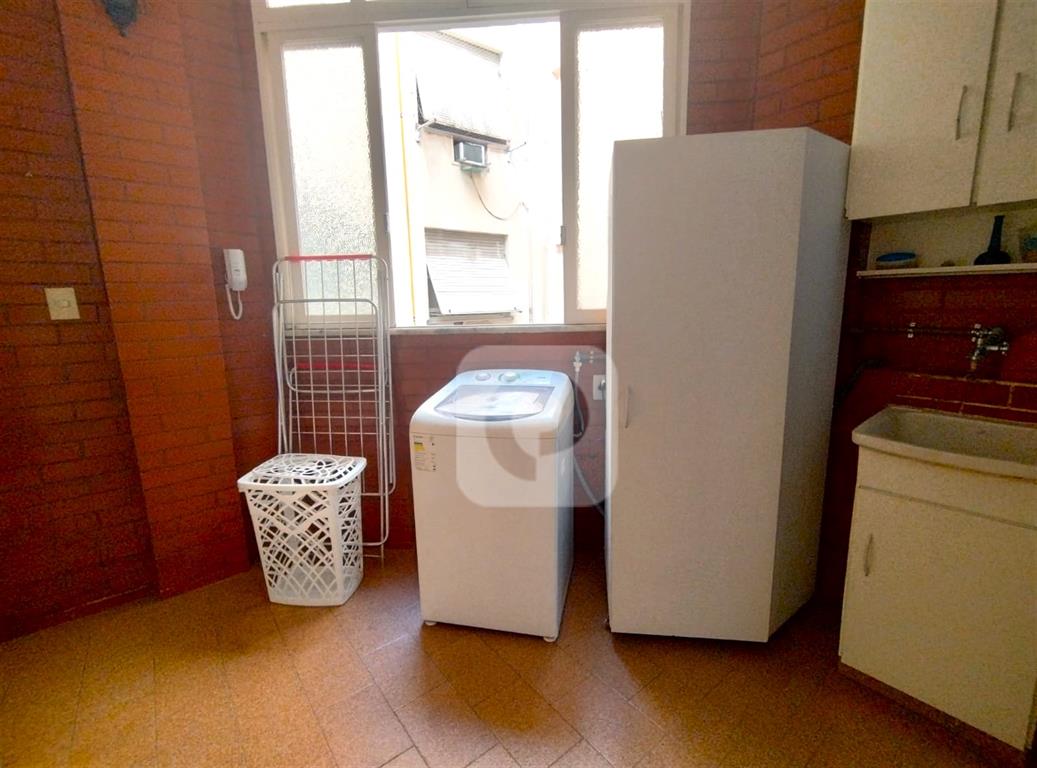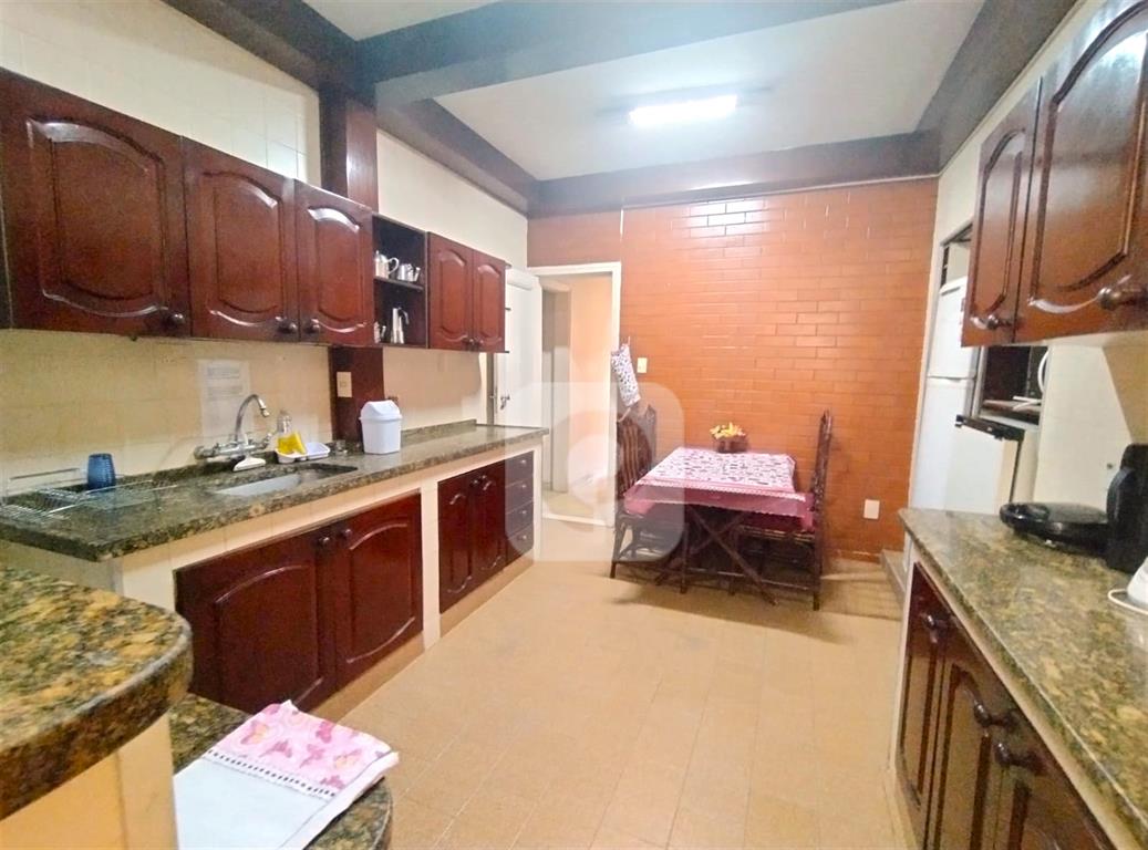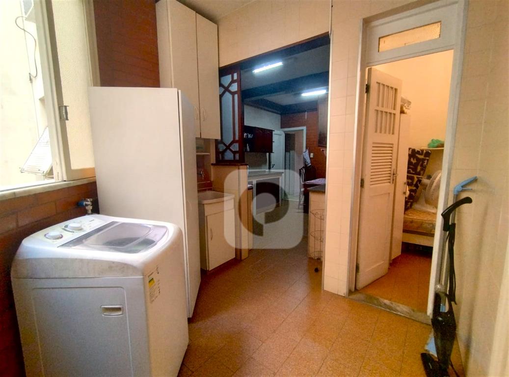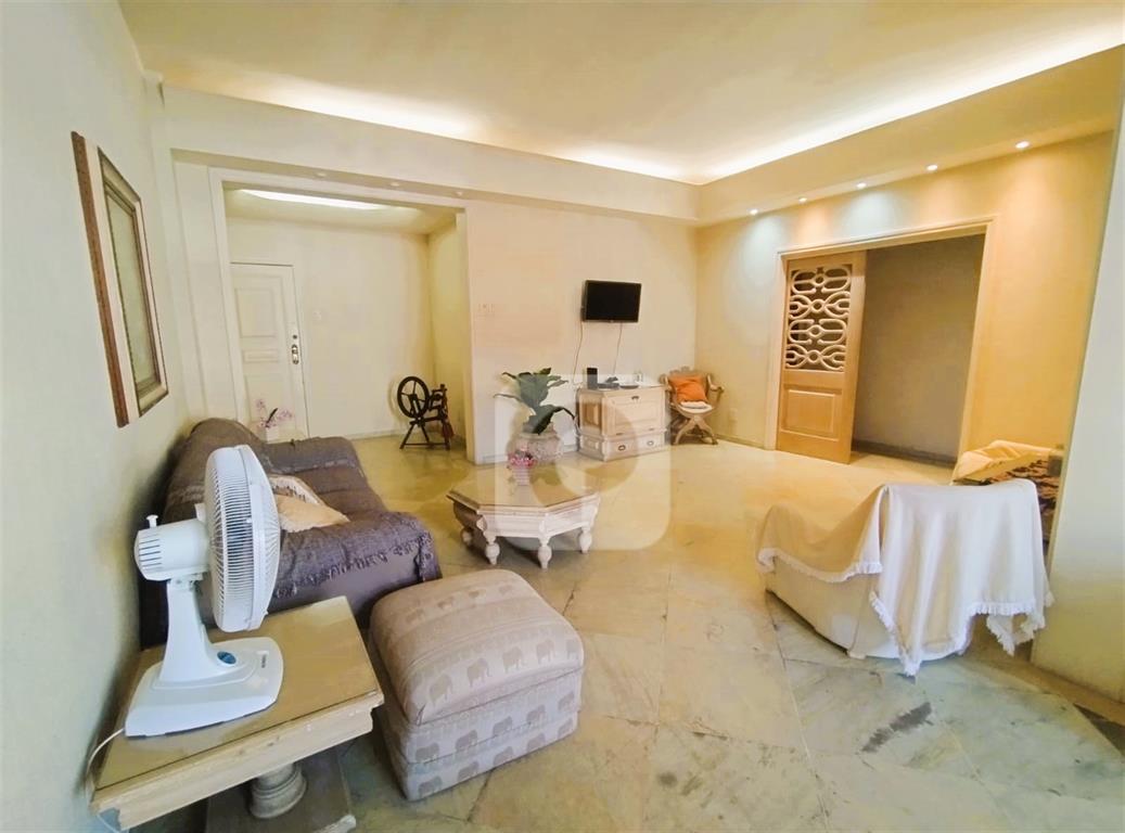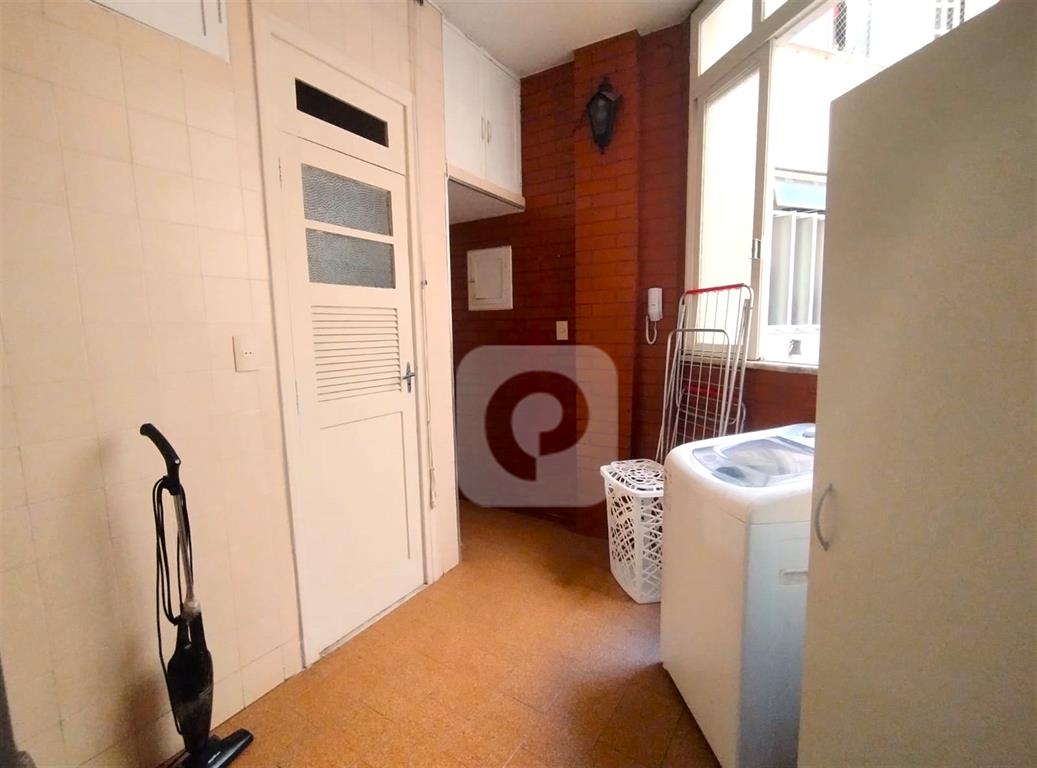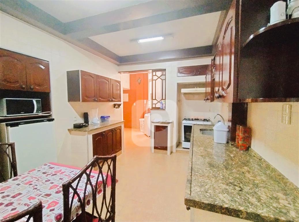 Andar alto, de frente, claro e arejado. Com uma planta de 130 m² e diversas possibilidades, esse apartamento é composto de sala ampla para 2 ambientes, 3 bons quartos com armários, 2 banheiros sociais (possibilidade de suíte), copa-cozinha ampla (que permite integrar com a sala), área de serviço e dependência completa. Uma vaga na escritura.