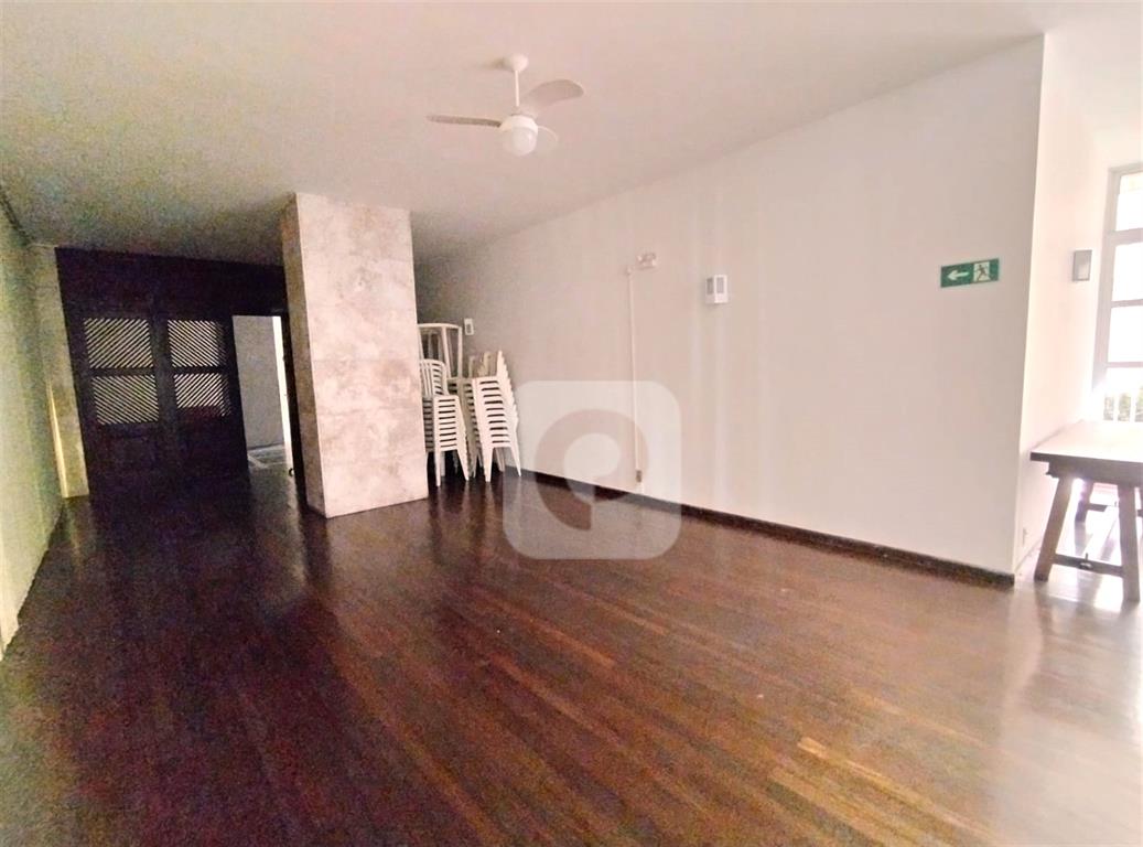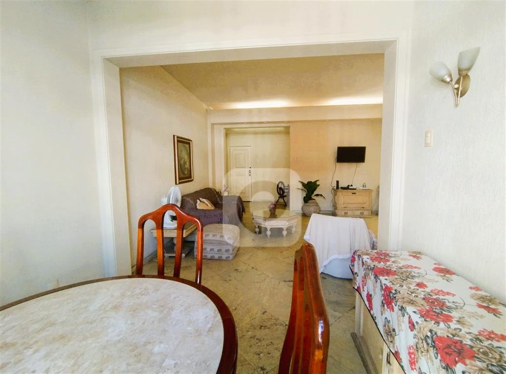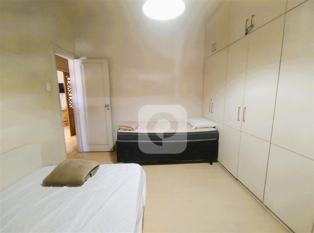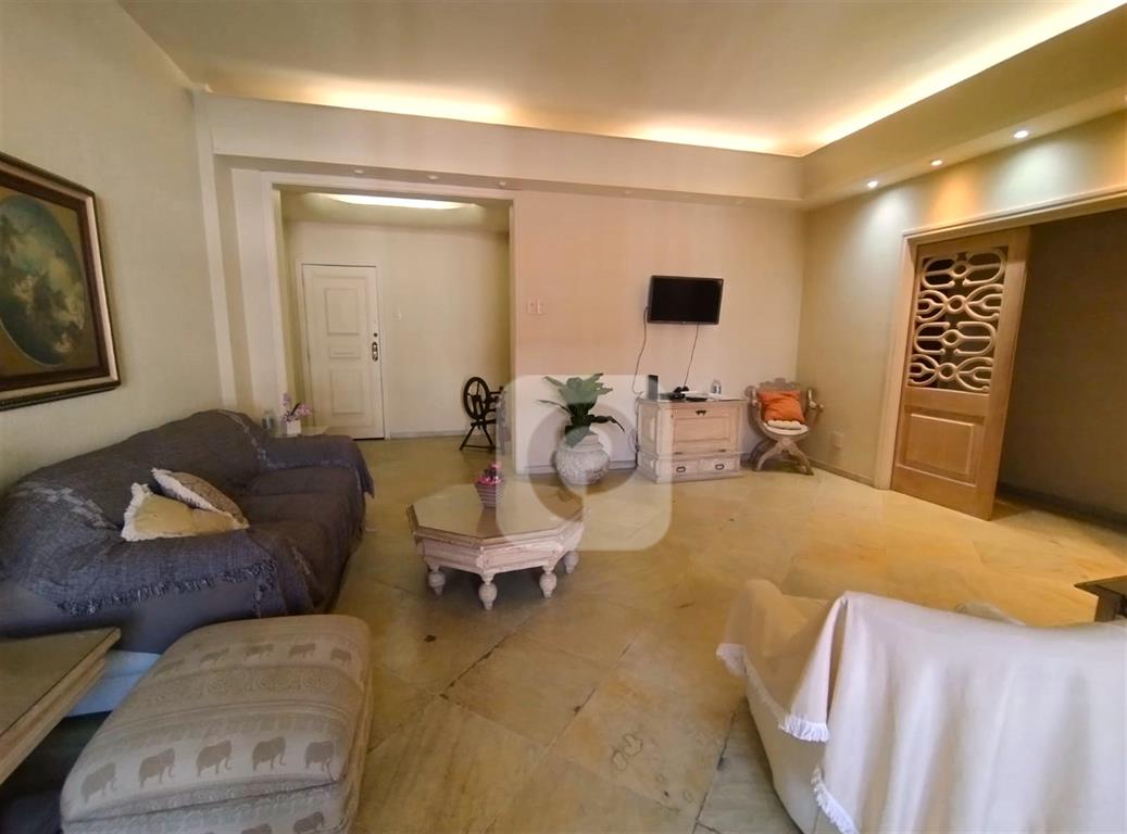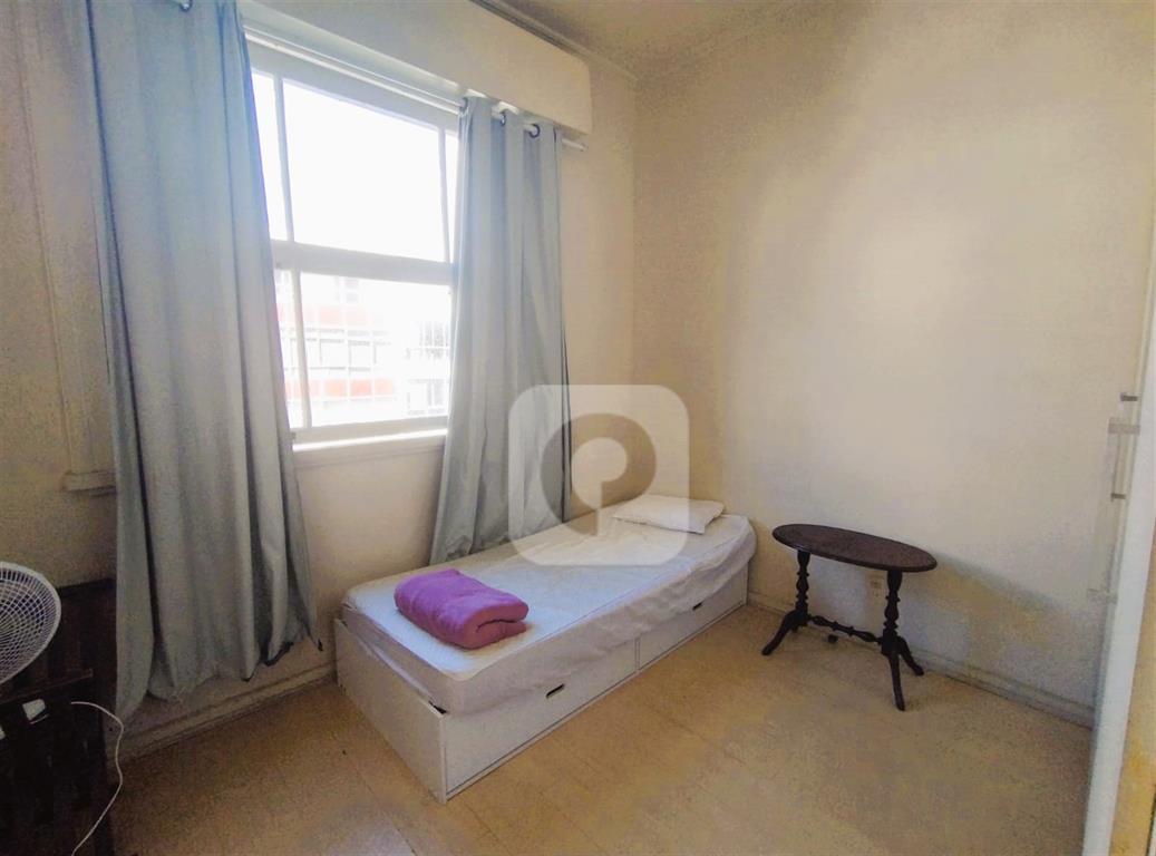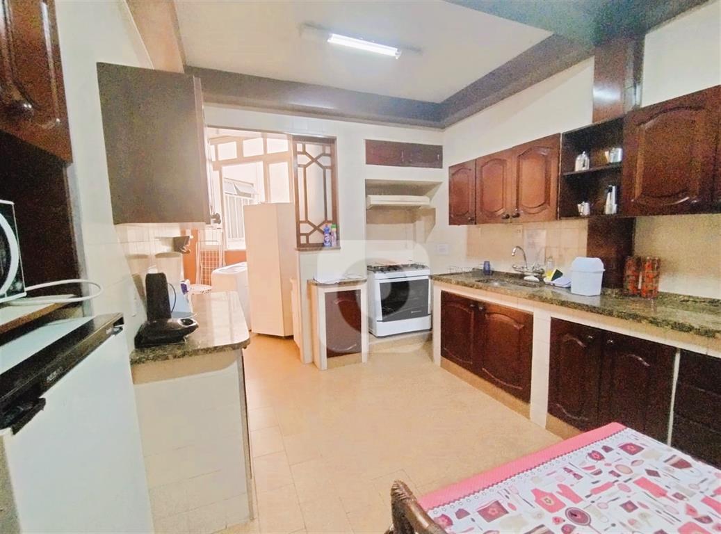 Andar alto, de frente, claro e arejado. Com uma planta de 130 m² e diversas possibilidades, esse apartamento é composto de sala ampla para 2 ambientes, 3 bons quartos com armários, 2 banheiros sociais (possibilidade de suíte), copa-cozinha ampla (que permite integrar com a sala), área de serviço e dependência completa. Uma vaga na escritura.