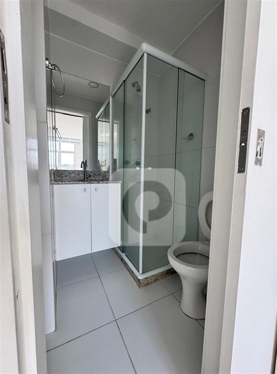 Banheiro social com armários e porta blindex – Conforto e praticidade para o seu dia a dia.