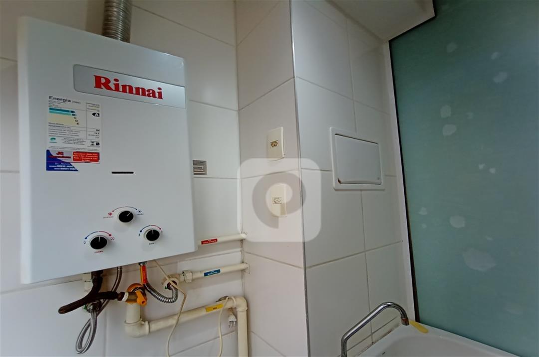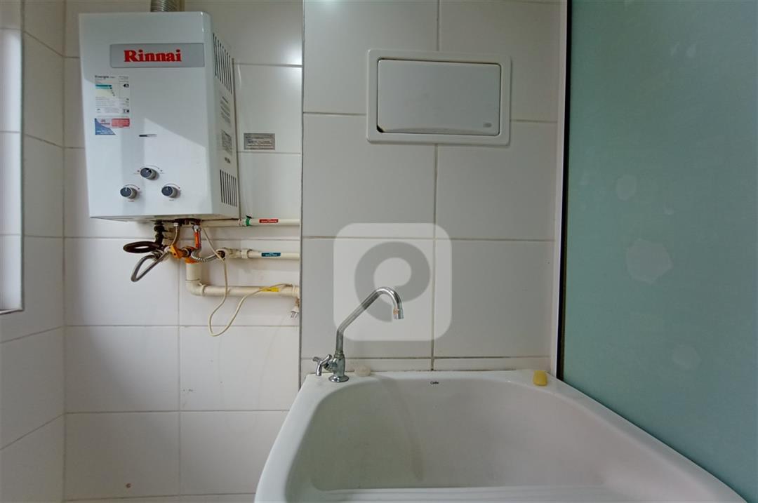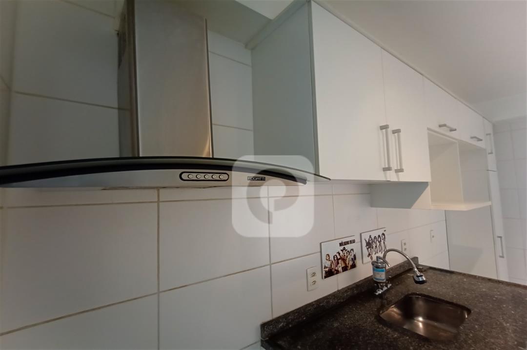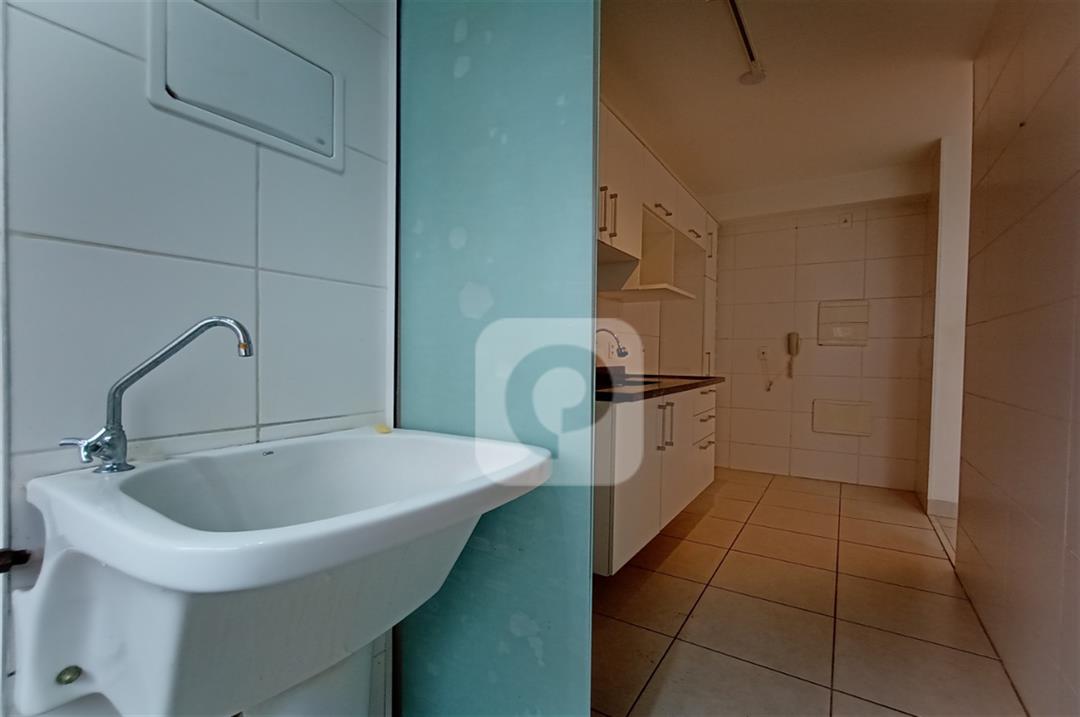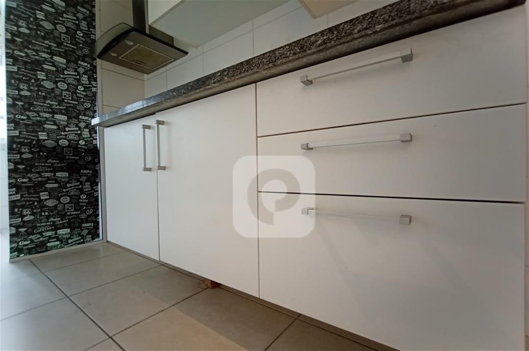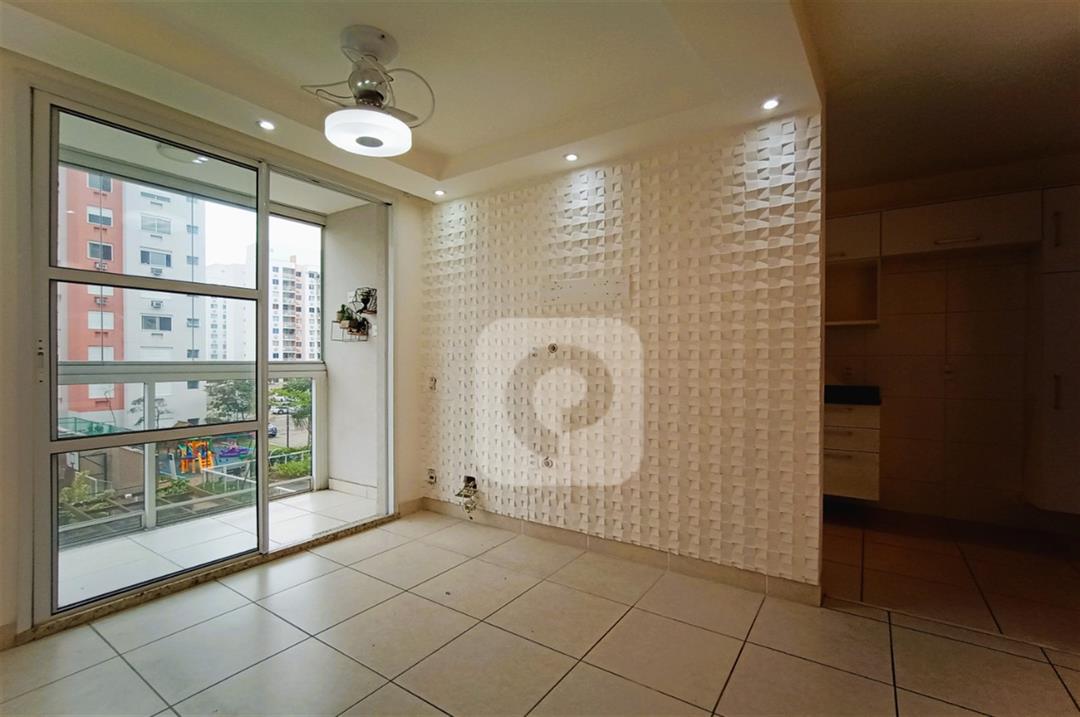 Com 2 quartos com armários embutidos, sendo 1 suíte, sala com varanda, teto rebaixado com luzes embutidas e uma luminária moderna, banheiro, cozinha com pia em mármore e armários embutidos e área de serviço separada.