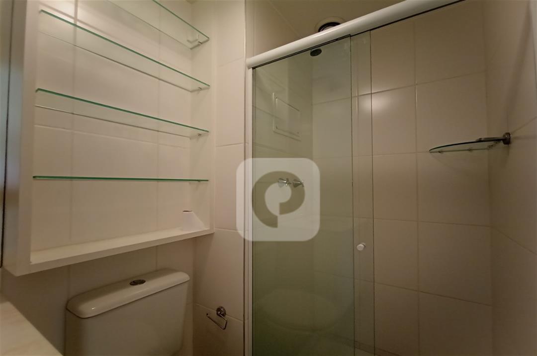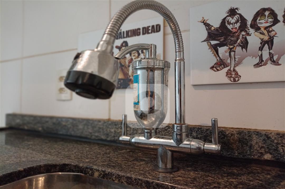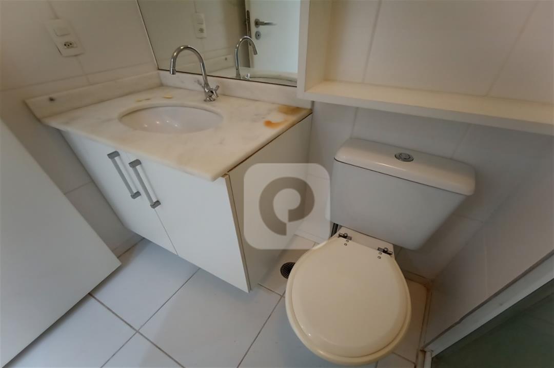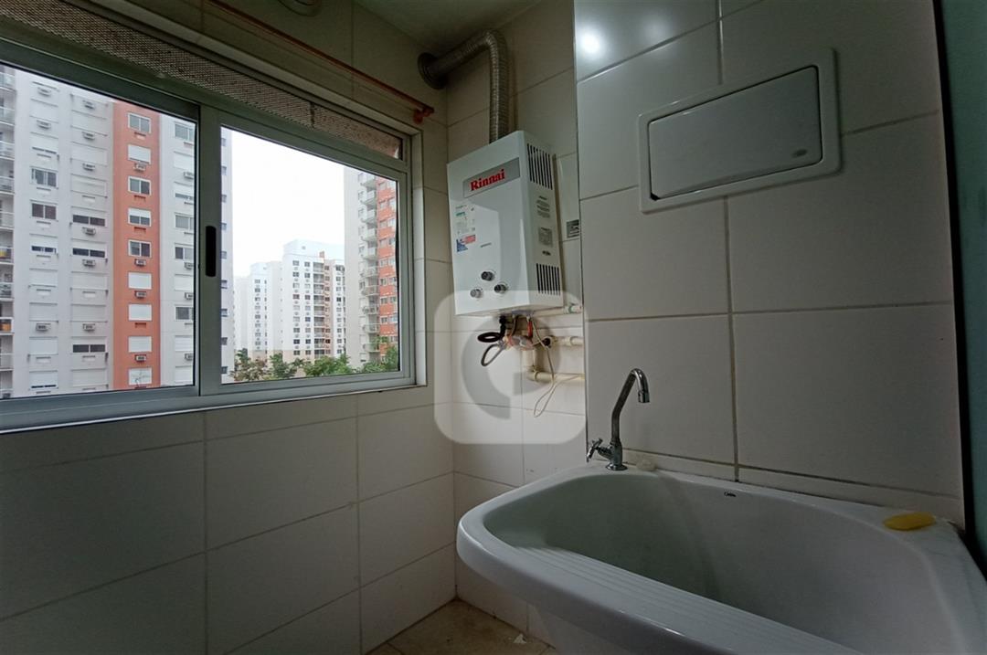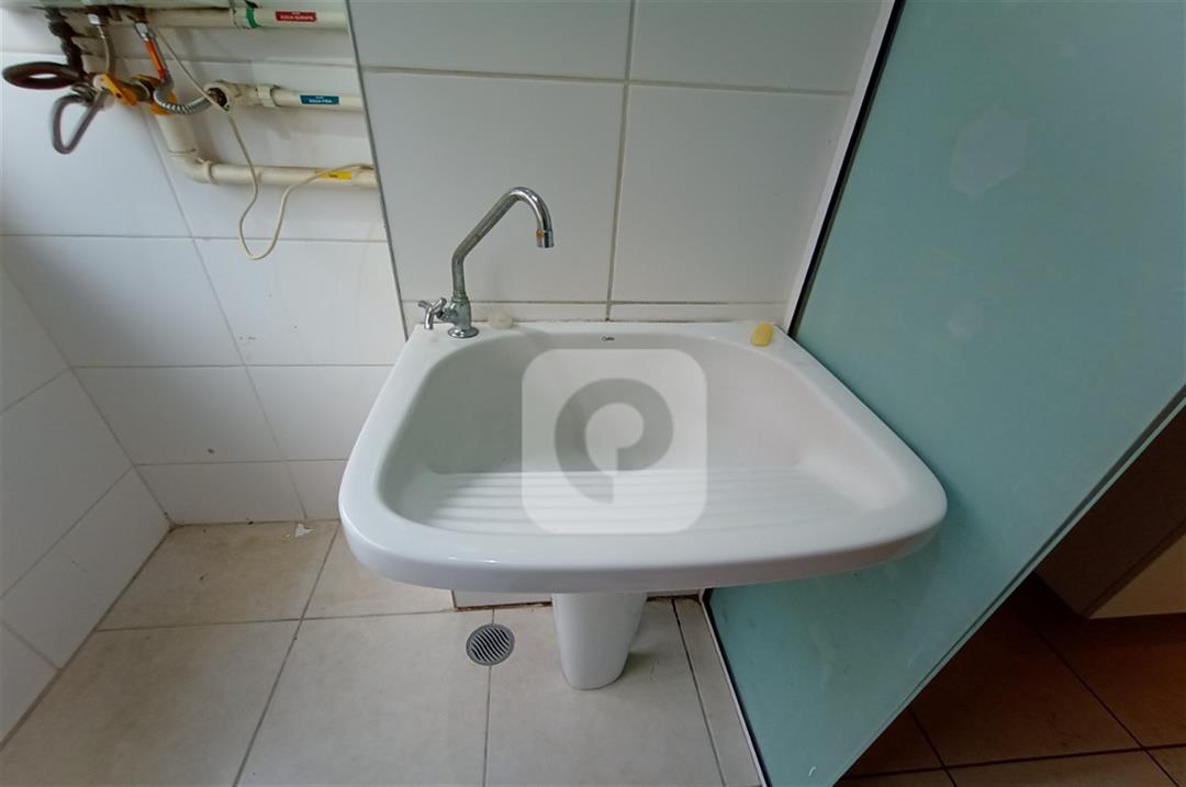 Com 2 quartos com armários embutidos, sendo 1 suíte, sala com varanda, teto rebaixado com luzes embutidas e uma luminária moderna, banheiro, cozinha com pia em mármore e armários embutidos e área de serviço separada.