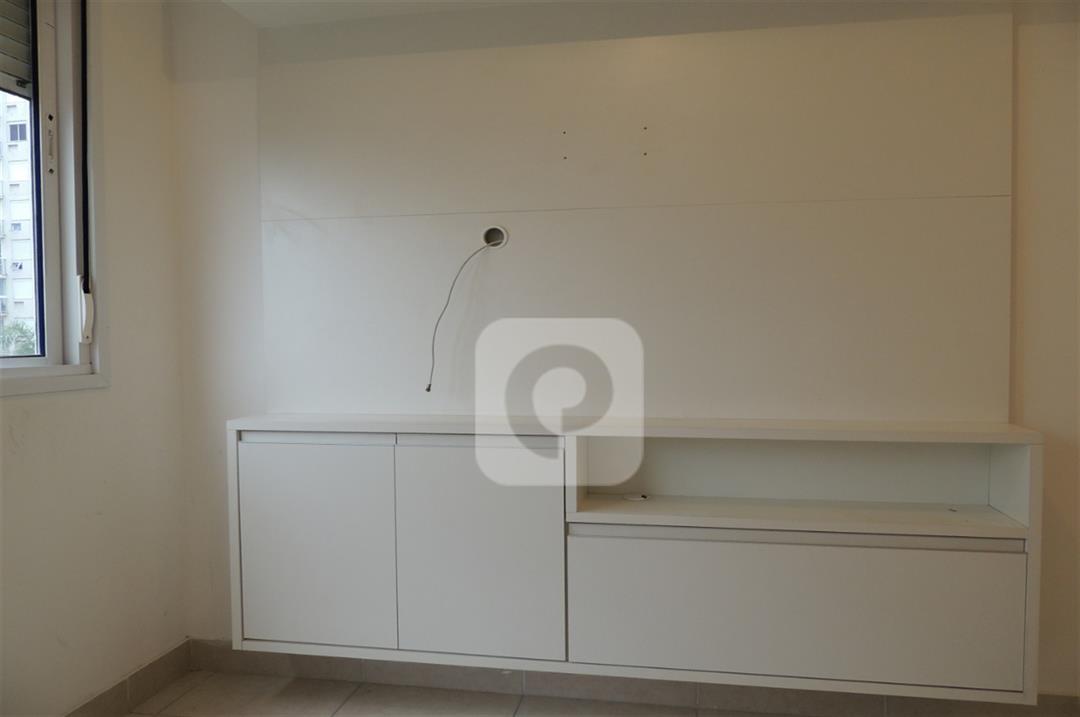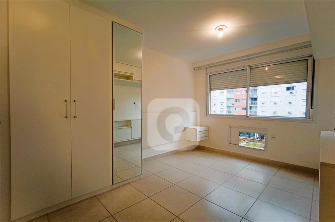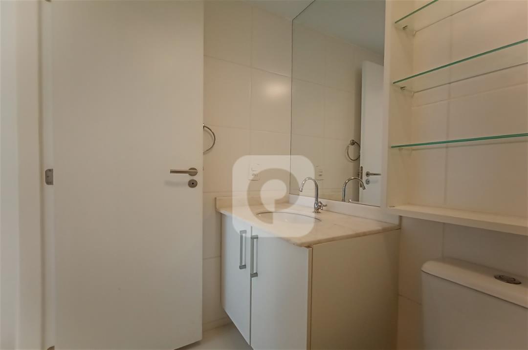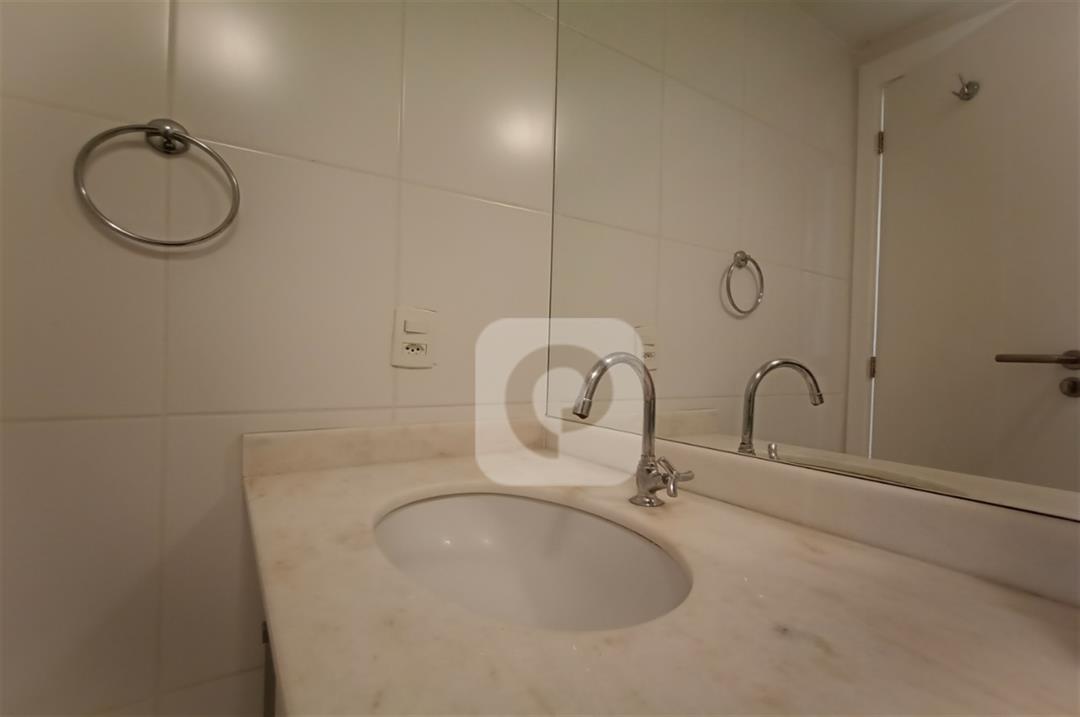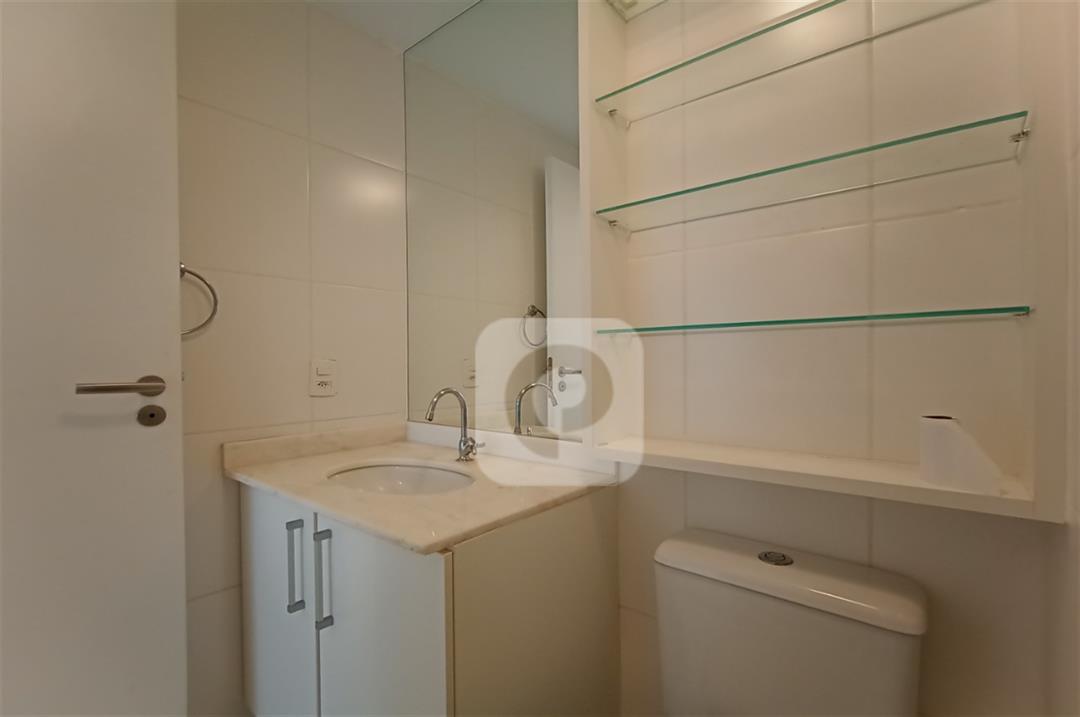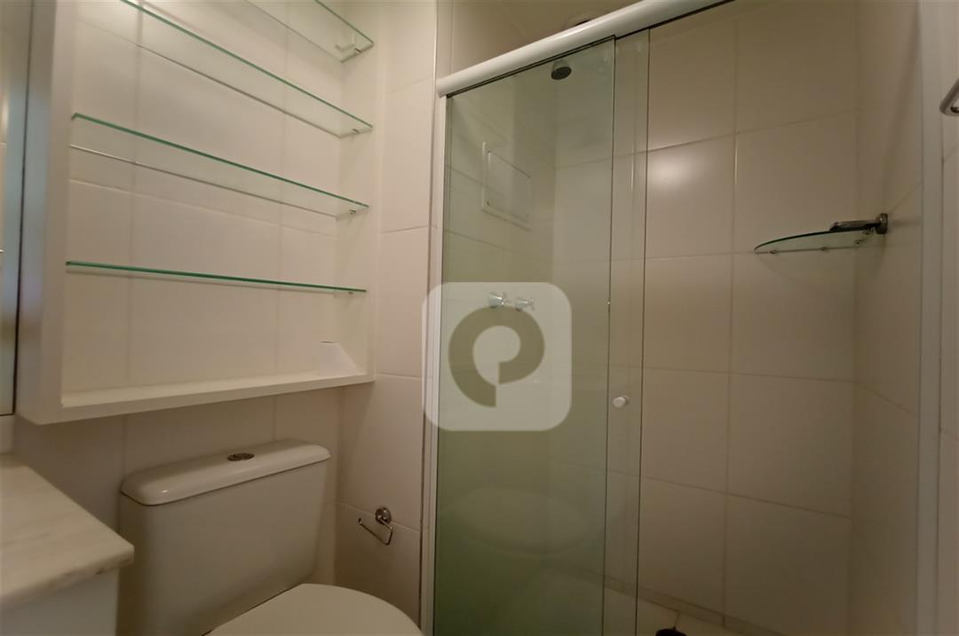 Com 2 quartos com armários embutidos, sendo 1 suíte, sala com varanda, teto rebaixado com luzes embutidas e uma luminária moderna, banheiro, cozinha com pia em mármore e armários embutidos e área de serviço separada.