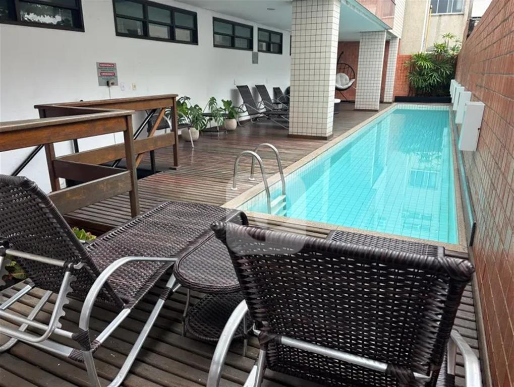 Quarto confortável com cama de casal, TV LCD 32” e ar-condicionado split, Cozinha americana equipada com fogão, geladeira e micro-ondas, Banheiro moderno com blindex e aquecedor; Varanda privativa para momentos de descanso. Condomínio completo – infraestrutura de lazer e comodidade: Piscina, Sauna e academia equipadas; Sala de ginástica e lavanderia, 1 vaga de garagem na escritura, coberta, com acesso facilitado por elevador social e de serviço; Recepção e segurança 24h, garantindo tranquilidade total.
