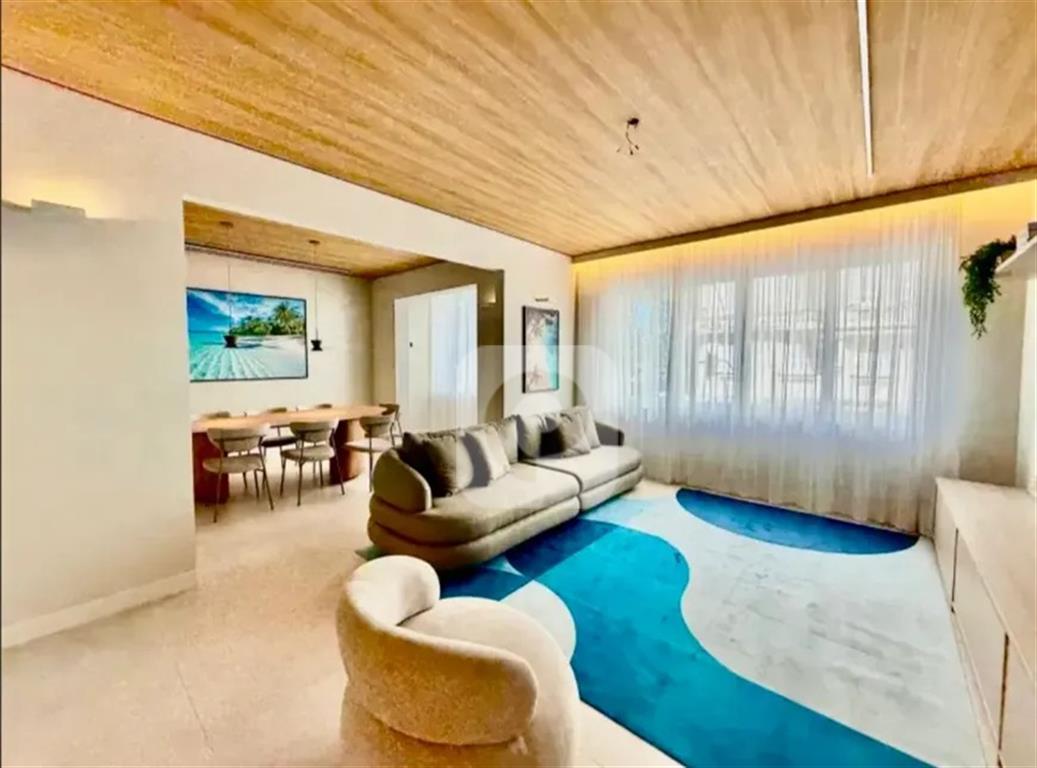 A apenas 50 metros da praia, este apartamento totalmente reformado por arquiteto combina sofisticação, conforto e história.