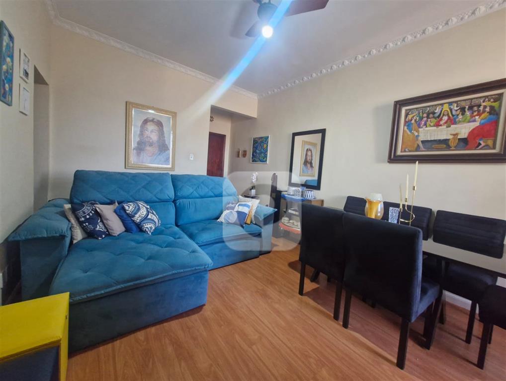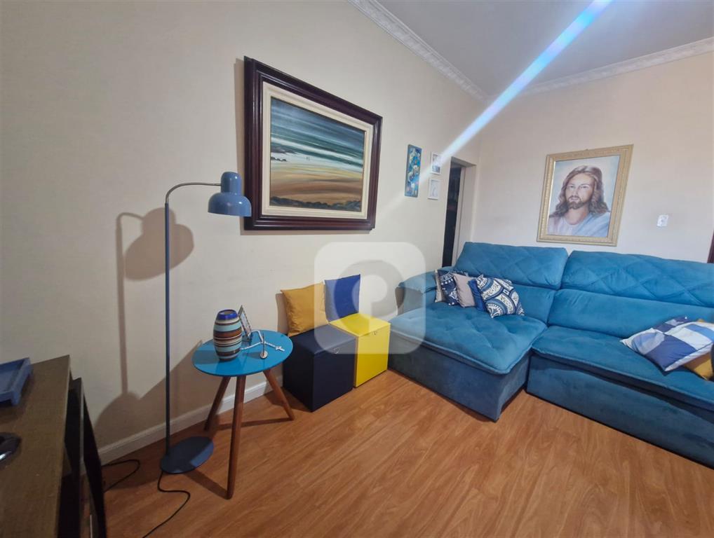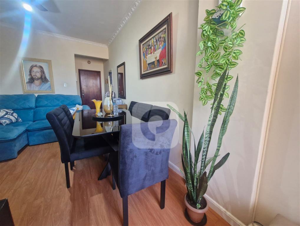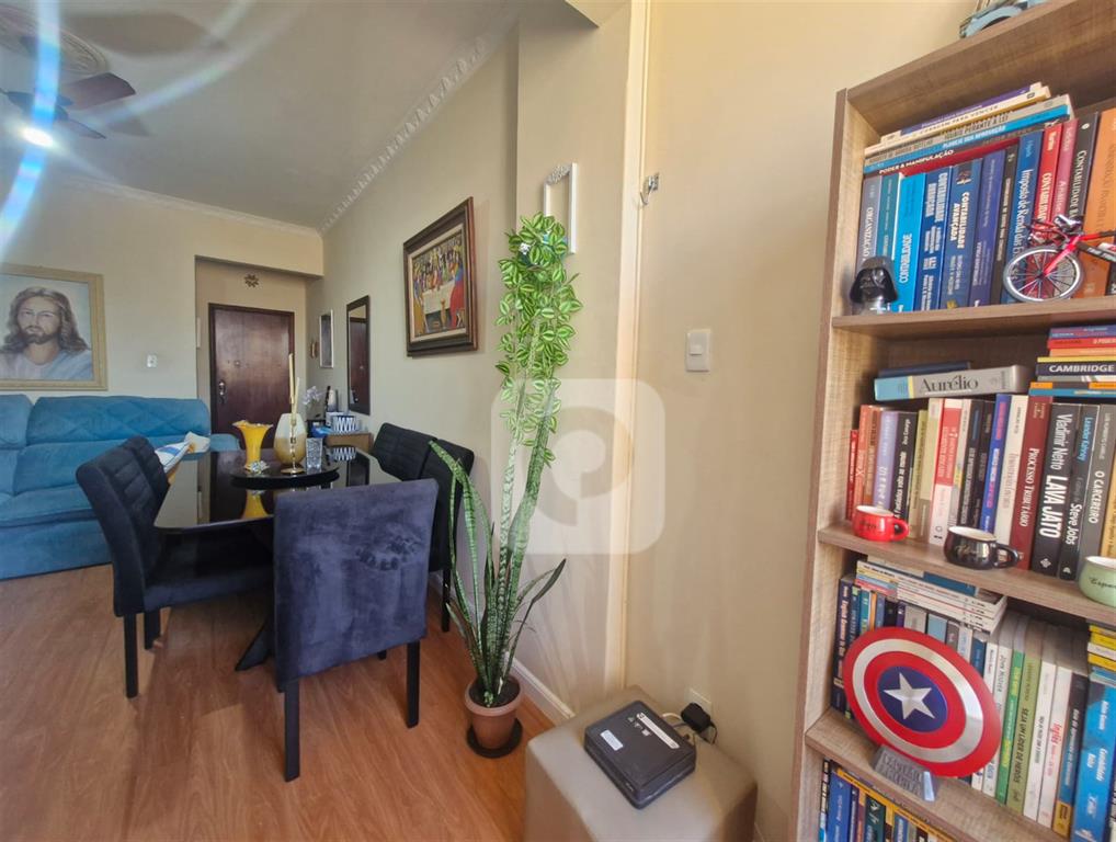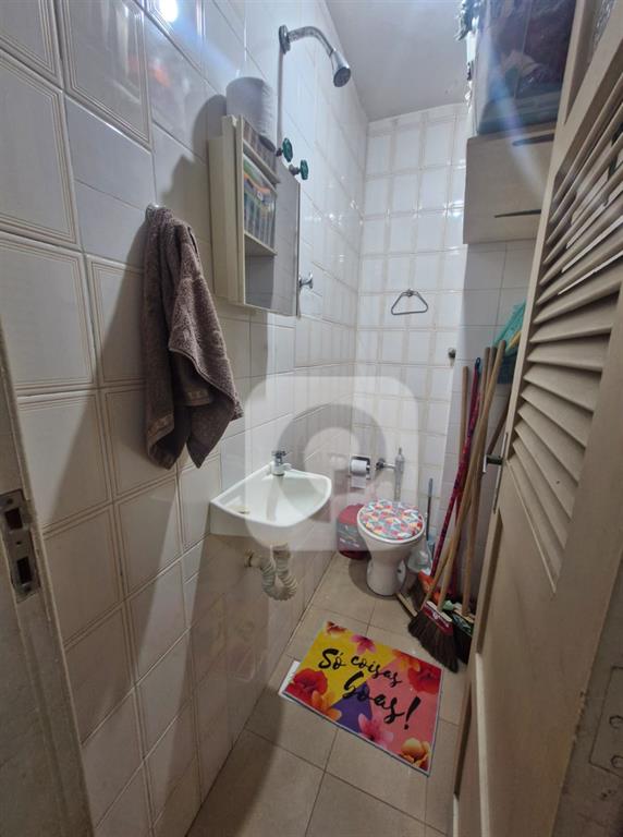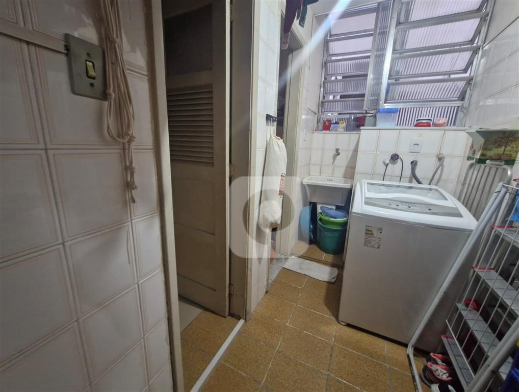Tipologia do imóvel, sala, dois quartos, banheiro social, cozinha, área de serviço, dependência completa e vaga na escritura.
