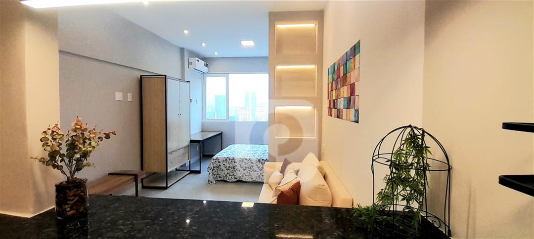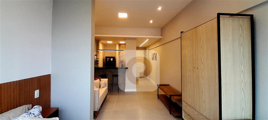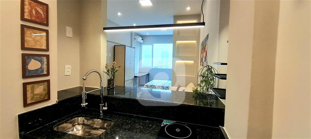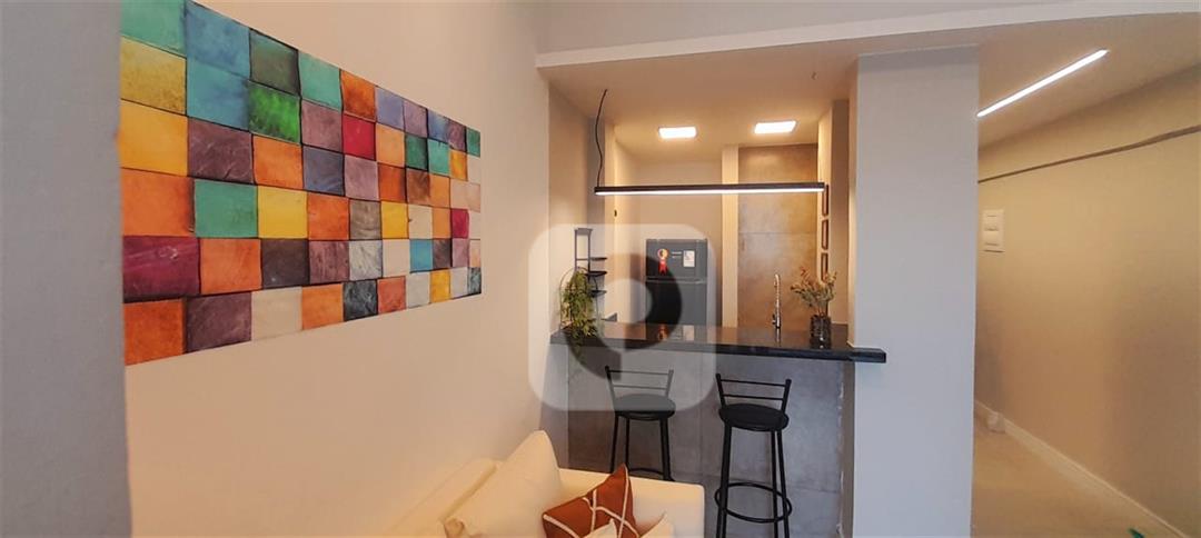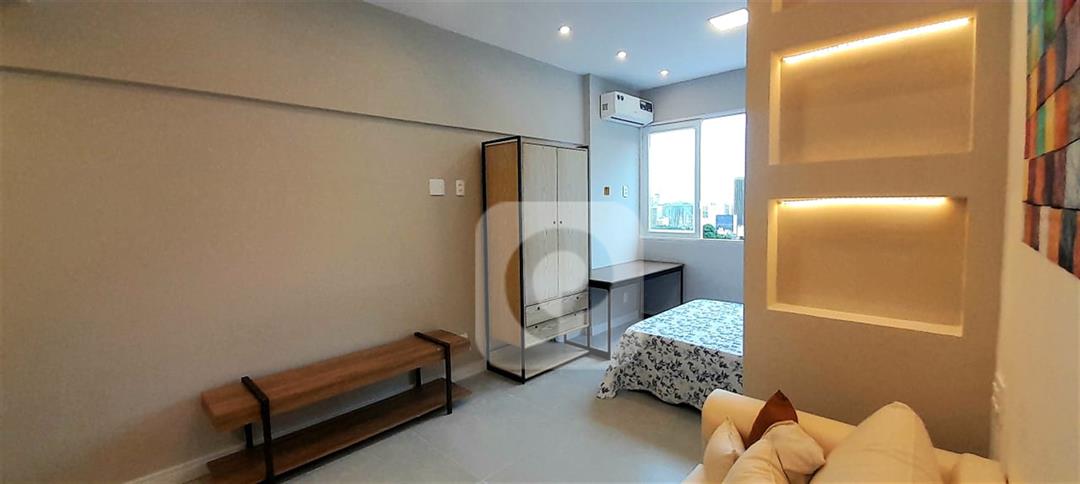 COD AP19832 – Apartamento conjugado totalmente reformado e decorado na Senador Dantas, Centro do Rio! Com 30m² com vista para a rua. O imóvel já vem semi-mobiliado com tudo o que você precisa: guarda-roupas, cama box, geladeira preta, sofá, banquetas altas, cooktop de indução, ar condicionado split, painel de TV, espelho no banheiro com ducha eletrônica, escrivaninha e fechadura eletrônica!