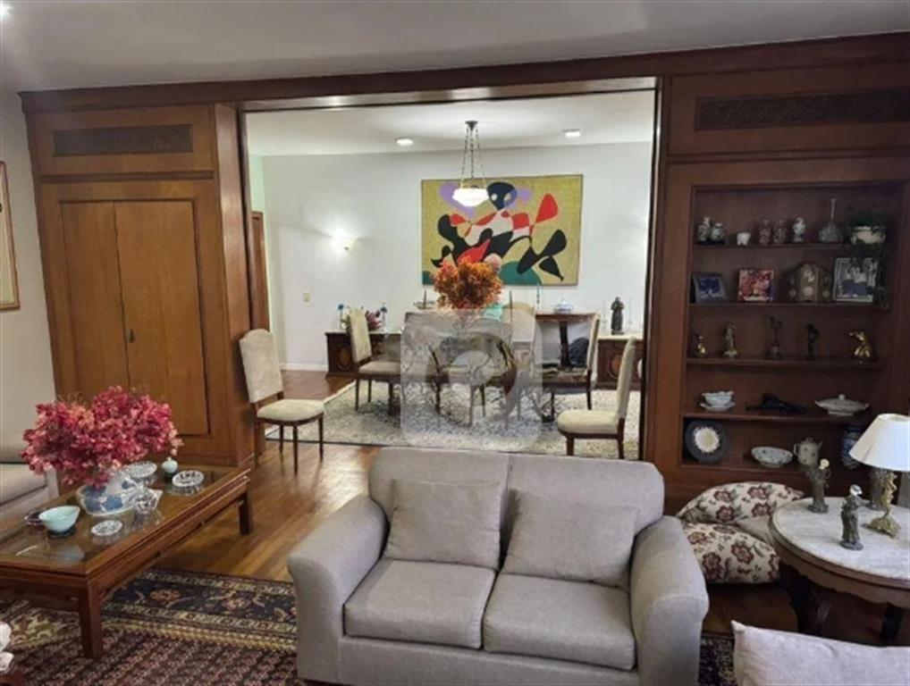 COD AP36533 – Sala dividida em dois ambientes, 3 quartos com uma suíte master, todos com armários, banheiro social , piso sofisticado em madeira de lei e mármore, cozinha, dependência completa e vaga de garagem na escritura. São 250m² , andar alto. vista indevassável.