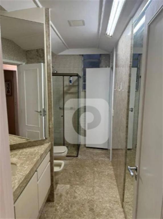 - Banheiro social espaçoso com armários e acabamento de primeira linha.