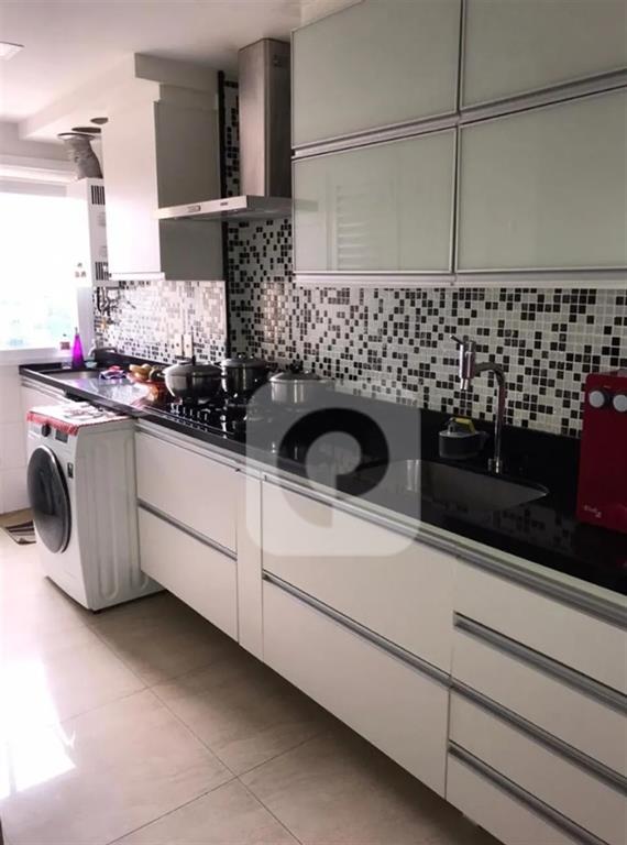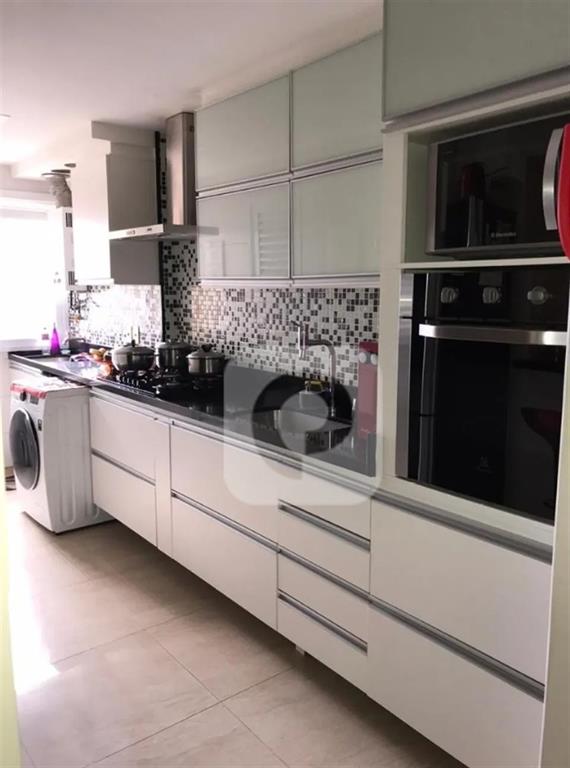 Cozinha planejada com armários sob medida e área de serviço independente.