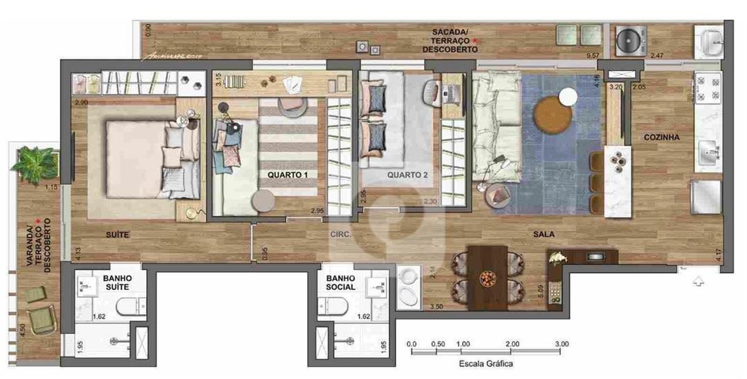 3 quartos (1 suíte)