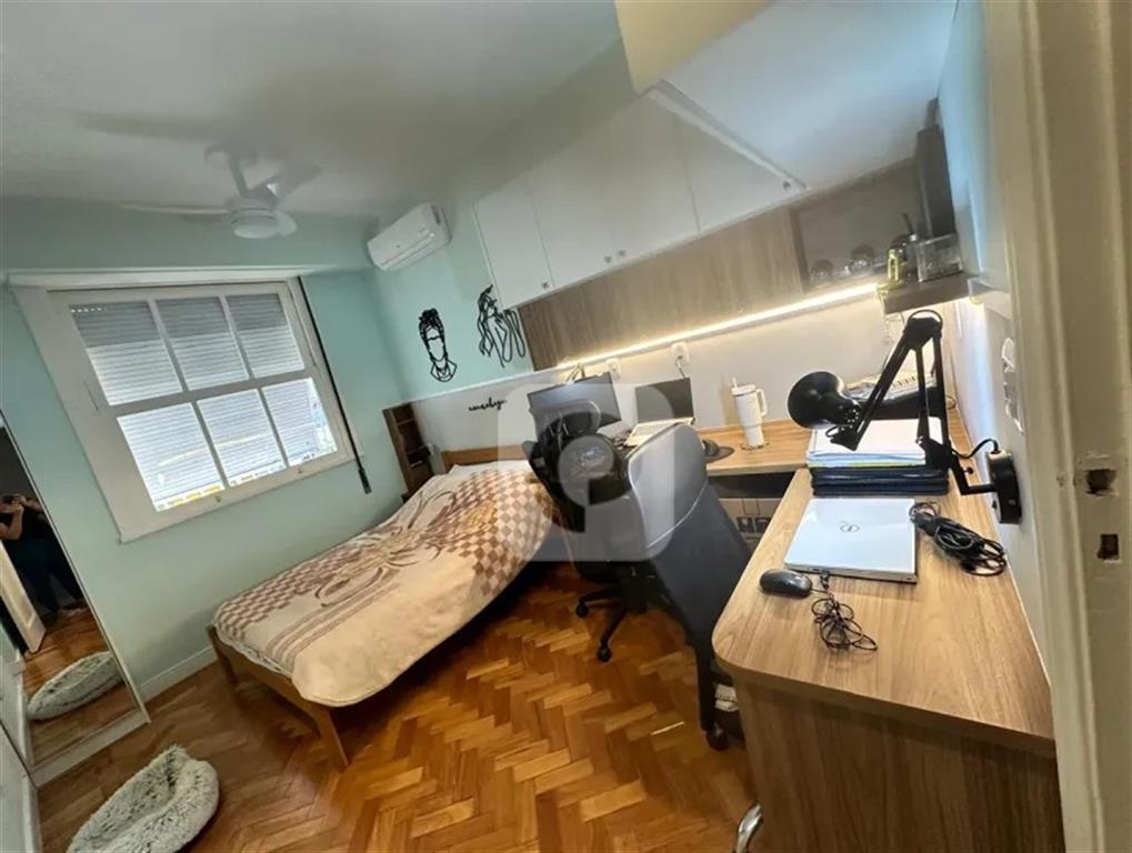 Originalmente com três quartos, o imóvel foi inteligentemente transformado para oferecer mais espaço e conforto. Atualmente, conta com dois quartos amplos: