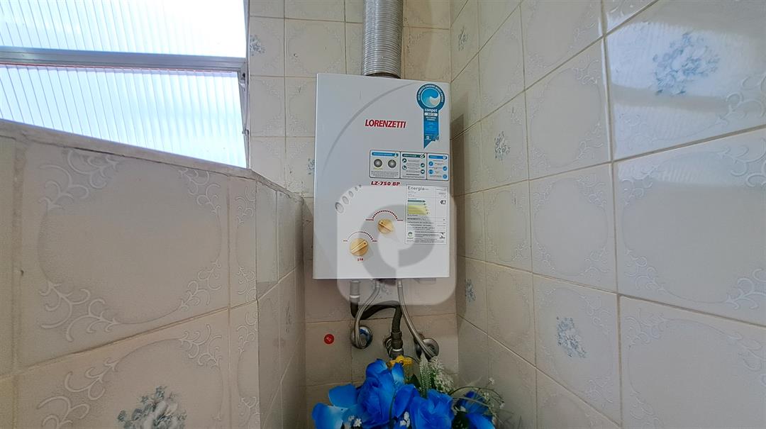 Banheiro com água quente com aquecedor à gás novo.