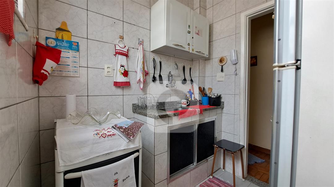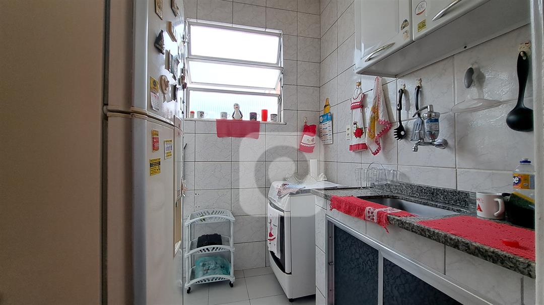Cozinha compacta, mas funcional.