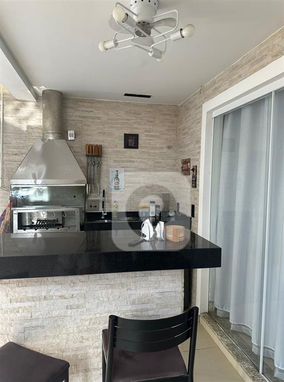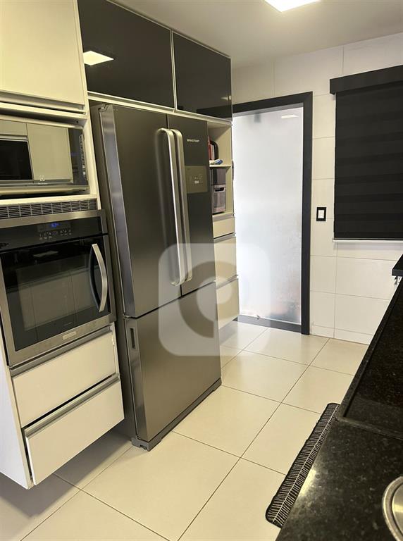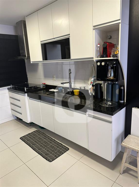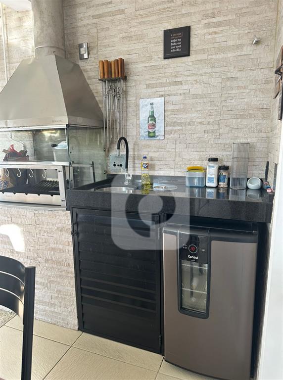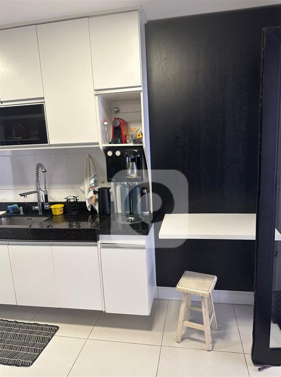 A cozinha gourmet, com bancadas novas e armários modernos, é perfeita para os amantes da culinária.