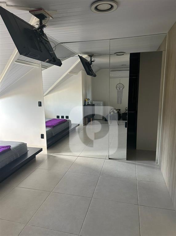 Area externa conta com churrasqueira, piscina aquecida e um belíssimo jardim. A casa ainda oferece diferenciais como energia fotovoltaica, ar condicionado, aquecimento de água a gás, sacada e varanda.
