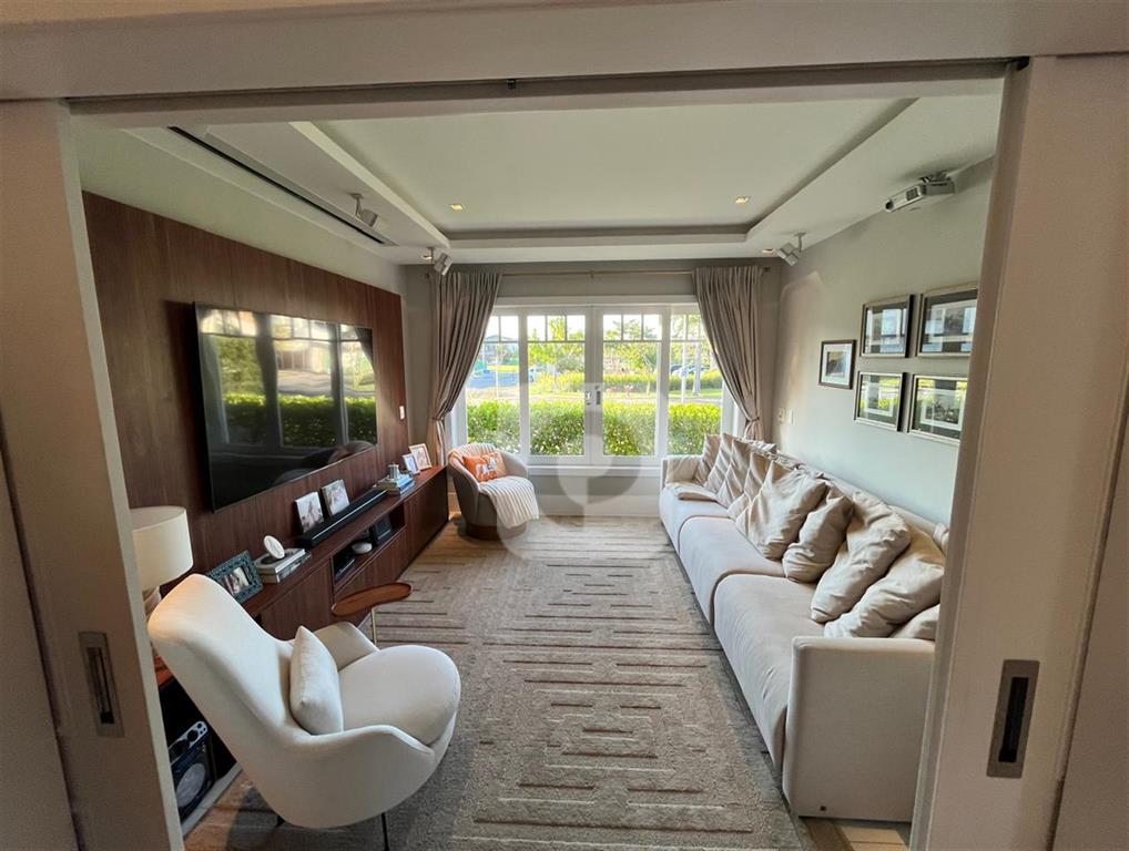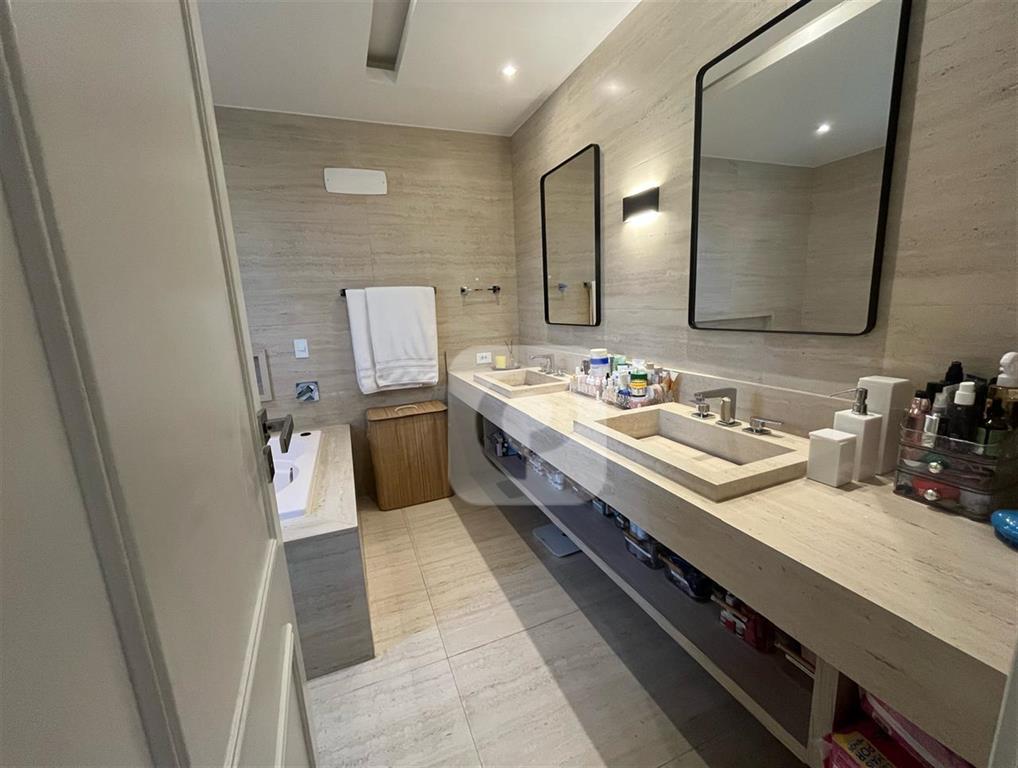 Hall de Entrada com pé direito duplo, Sala de Estar, Sala de Jantar, Home Theater com Telão da Gaia, Projetor Optoma e Caixas de Som Bose. Copa e Cozinha com armários em laca da Romanzza, Área de Serviço, Dependência de Empregados, Varanda, Varanda Gourmet, Suíte de Hóspedes, Espaço para Academia com Banheiro, Sauna à Vapor.