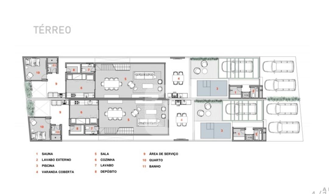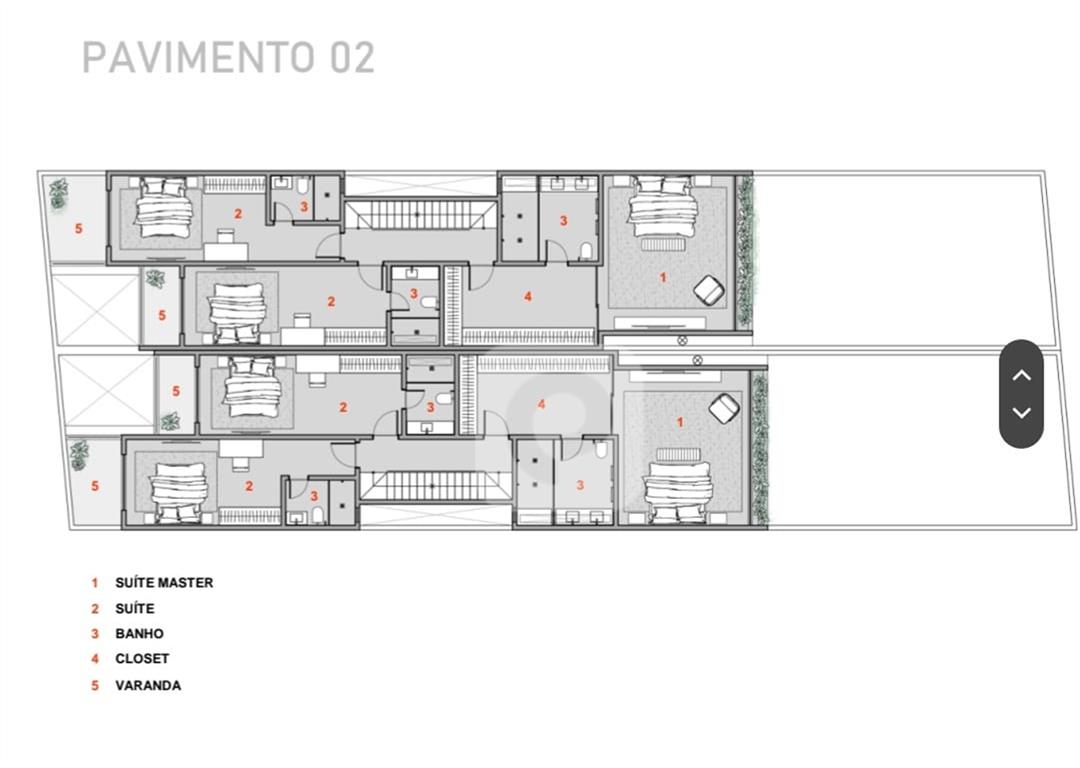 No interior, a casa oferece amplo living com luz natural, ampla sala, lavabo, copa-cozinha, lavanderia e dependência completa para funcionários. O segundo pavimento com 3 suítes com varanda, sendo a master com closet , banheiro com bancada dupla e banheira de hidromassagem. O terceiro pavimento conta com uma sala multiuso e terraço, ideal para um home office ou espaço de lazer.