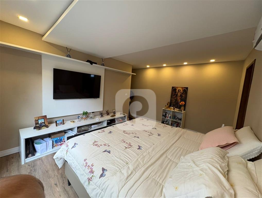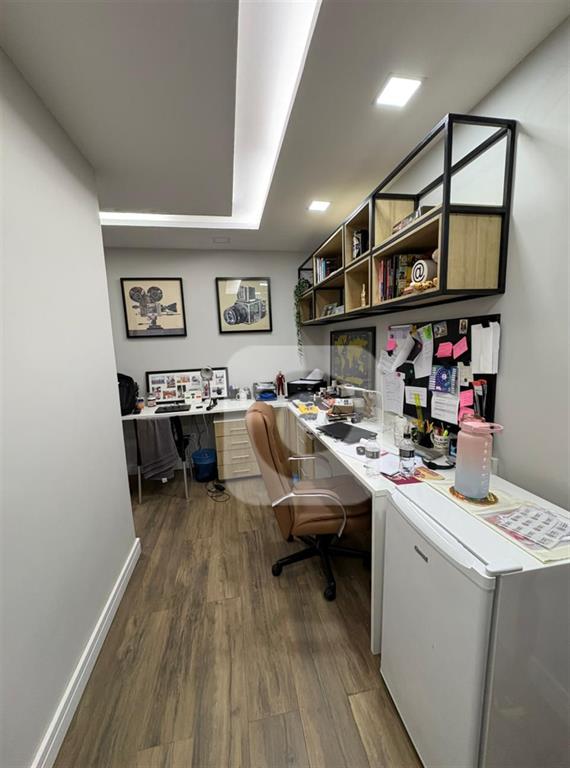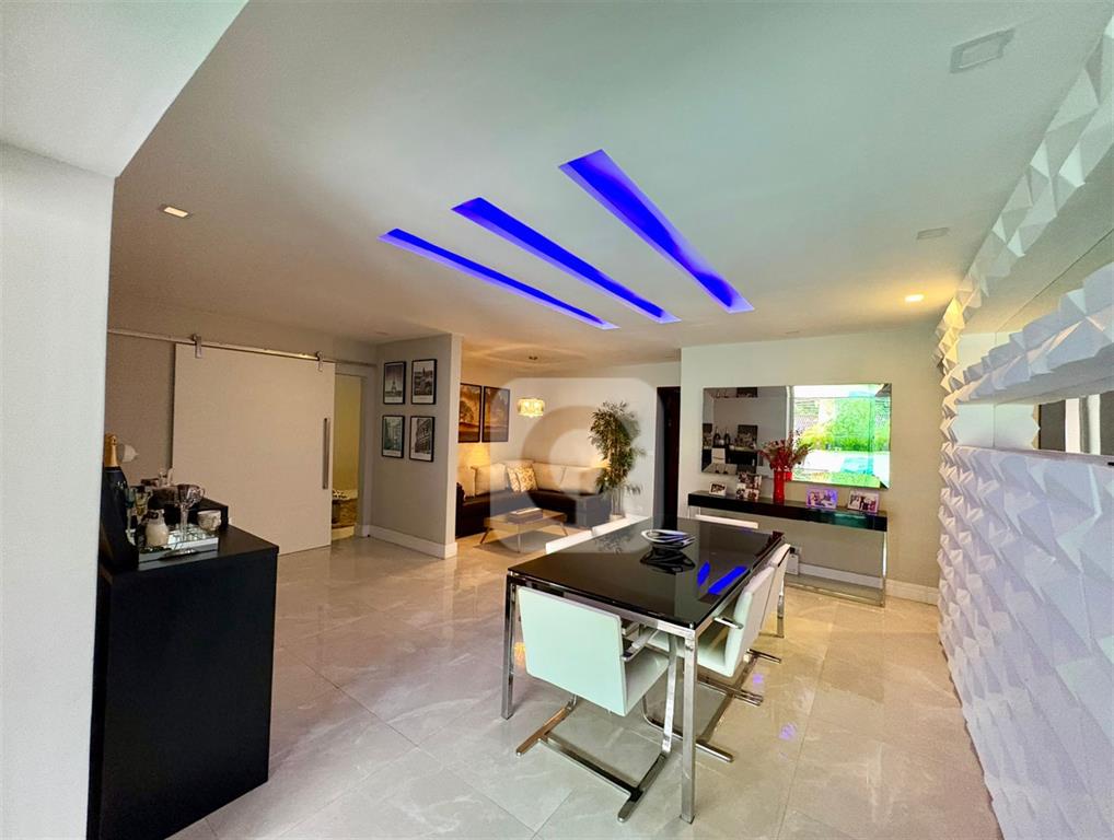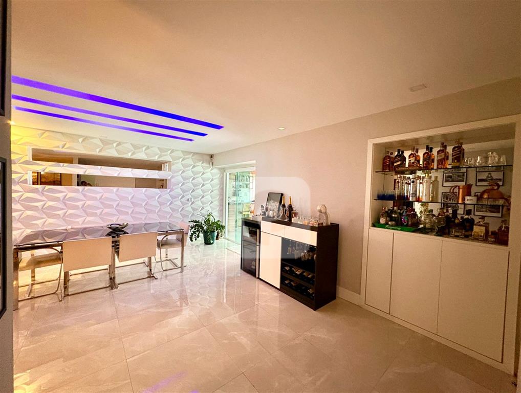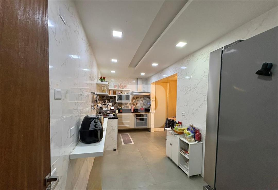 Possui 4 quartos, sendo uma suíte master com amplo closet, mais 2 suítes modernas (uma delas adaptada como escritório). Salão em 2 ambientes (sala de estar e jantar). Sala de TV separada. Cozinha espaçosa com armários planejados novos.