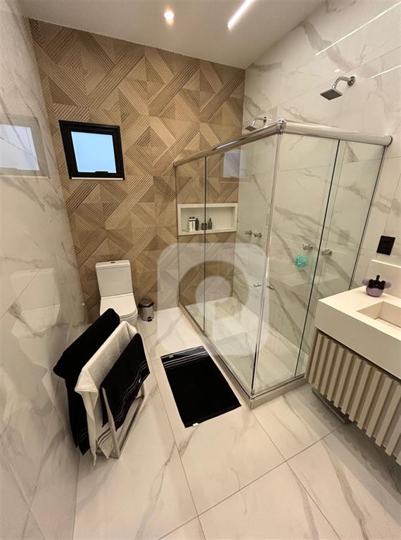 2o. Pavimento – ( 3 suites) Suite master, com bancada dupla, amplo box com dois chuveiros, com blindex e armarios planejados.