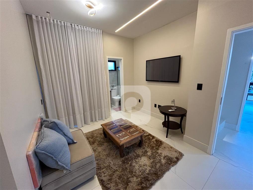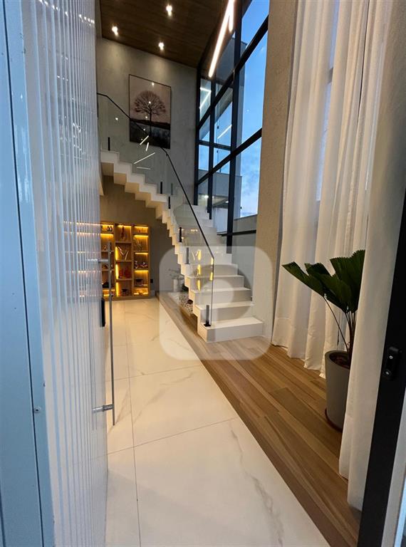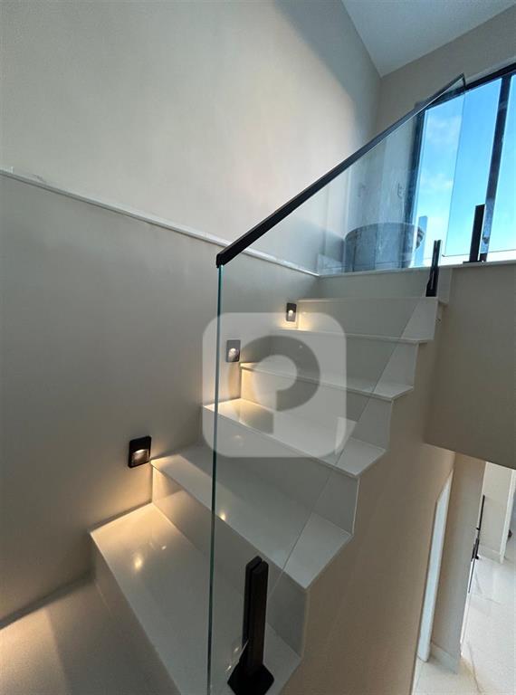 Terreo – sala ampla com fachada de vidro, integrada a cozinha, lavabo, com suite com banheiro ,, blindex, piso em porcelanato, area de serviço com bancada de granito, rebaixamento em drywall, iluminação direta e indireta, ar condicionado cassete na sala e split nas suites, cozinha com bancada e ilha em pedra Ultra-compact Calacata Romeno acetinado, armarios planejados da Concept interiores, escada em granito Diamond Stone Classic super White, area gourmet com churrasqueira de carvao, bancada em granito preto escovado.