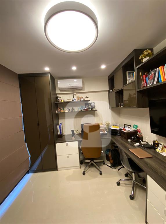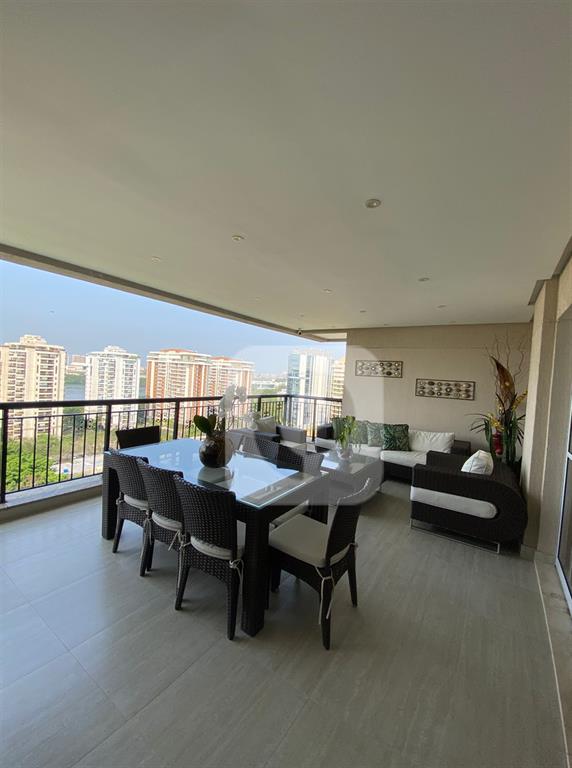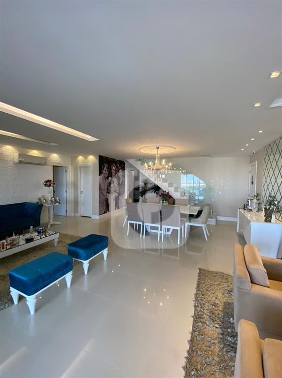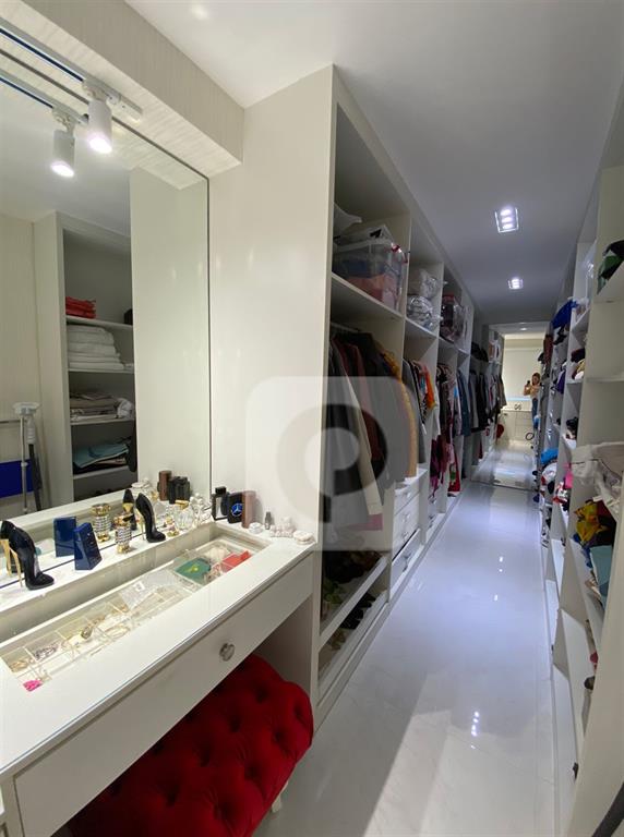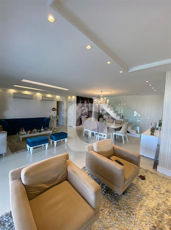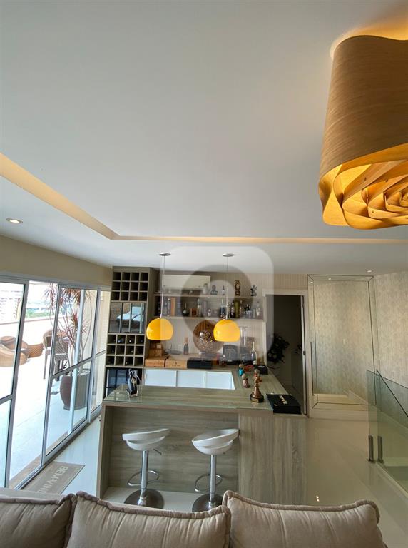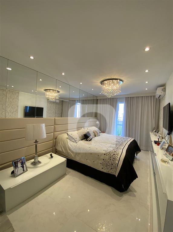 Caracteristicas: A cobertura está localizada na melhor coluna do condomínio, com vista indevassável para o parque e lagoa. Nela constam 4 quartos os 4 suítes, com a planta modificada aproveitando melhor o espaço e ampliando a suíte master com um incrível closet, área para joias e maquiagens, muitos armários e gaveteiros. Banheiro da suíte master consta com uma espaçosa banheira. Todas as suítes possuem basculhantes. Imóvel muito ventilado. Sala de estar integrada com sala de jantar, ambas bem espaçosas, varandão com churrasqueira, móveis planejados. Cozinha completa com mesa para café da manhã. Área de serviço, dependência e banheiro de serviço completos.No andar de baixo ficam três suítes e a suíte master fica separada, no andar superior. No segundo pavimento, com elevador social do prédio que te deixa no andar superior direto, sem necessidade de passar pelo andar inferior e com a facilidade de não precisar subir escadas, ir de elevador, constam o lavabo, sala com bar planejado, suíte master com banheiro e closet, e o magnífico deck com piscina e área gourmet com pia, geladeira e churrasqueira a carvão.