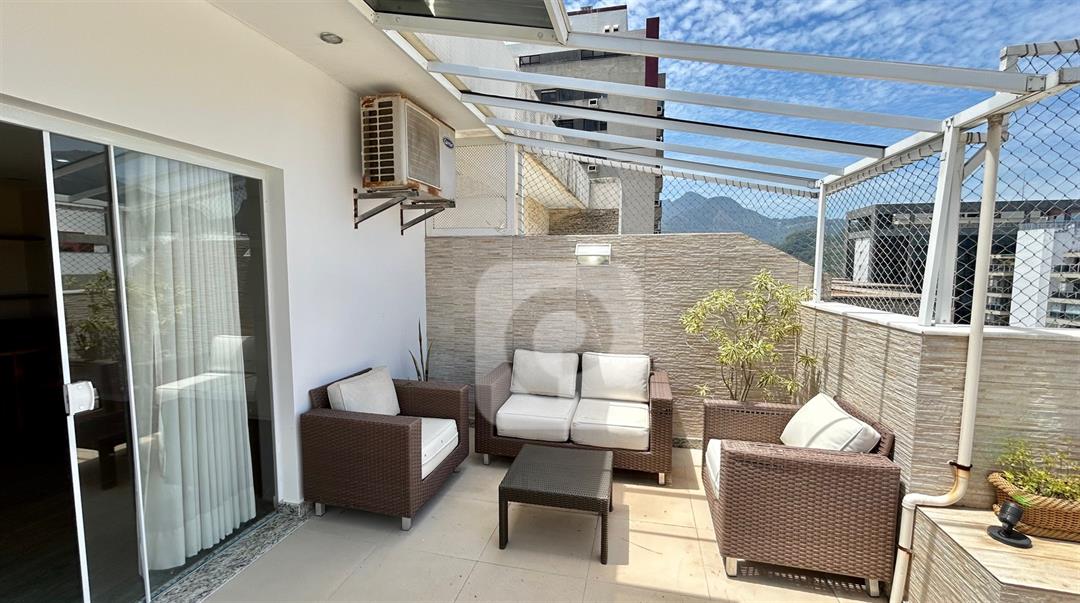 -2ºPISO: ampla sala com espaço para um terceiro quarto, lavabo, área externa com espaço gourmet, vista para a Pedra da Gávea, churrasqueira, ducha e piscina.