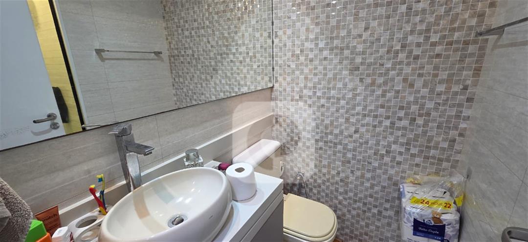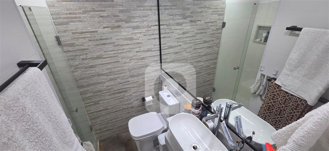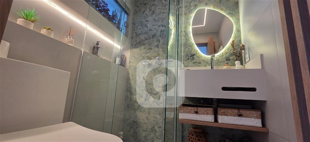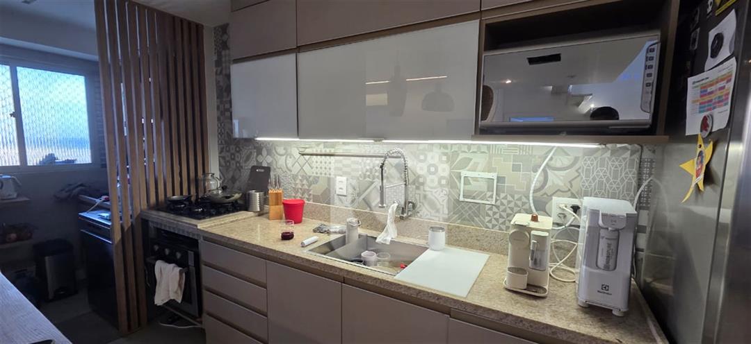 Primeiro andar: Varanda fechada com cortina de vidro, sala em 2 ambientes com cozinha integrada, 2 quartos sendo 1 suíte, banheiro social e área de serviço;