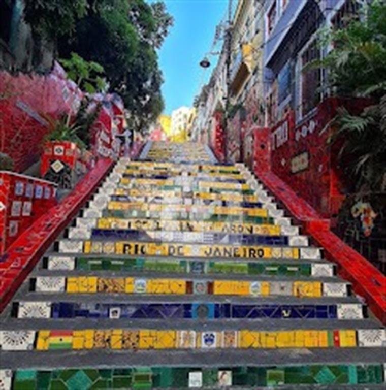 Ao lado da Escadaria Selaron e próximo Arcos da Lapa