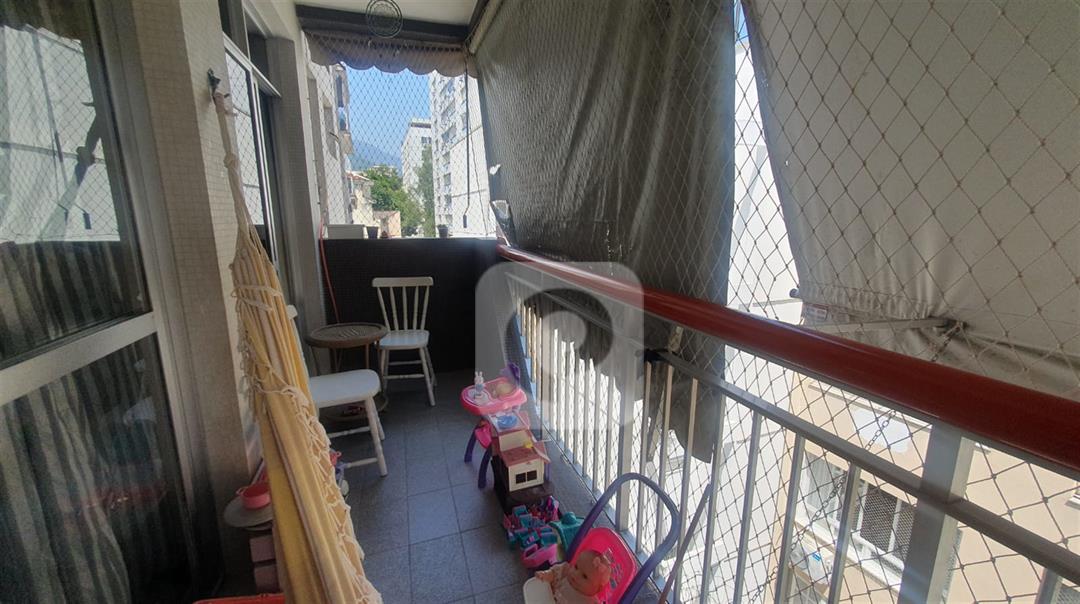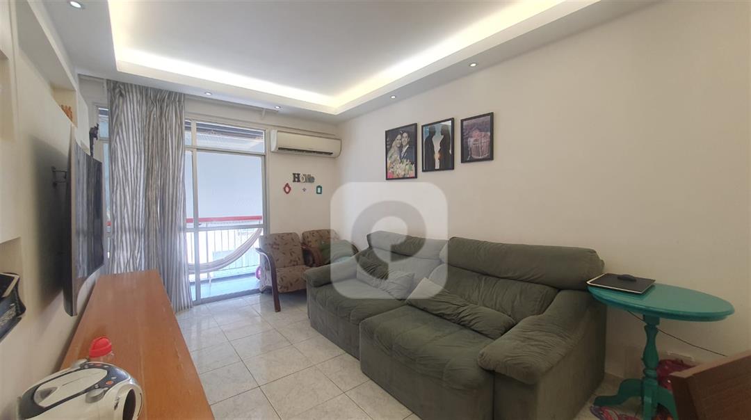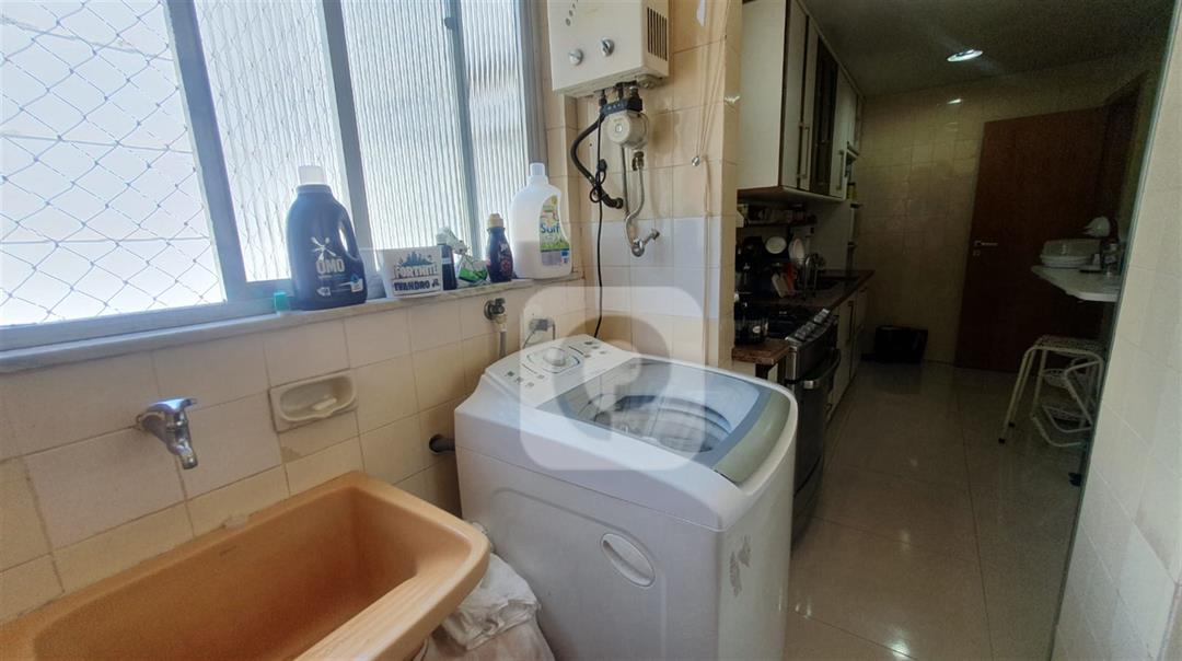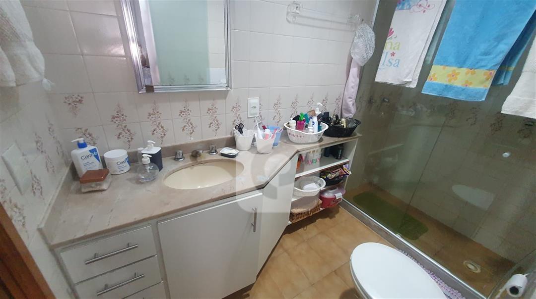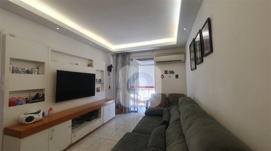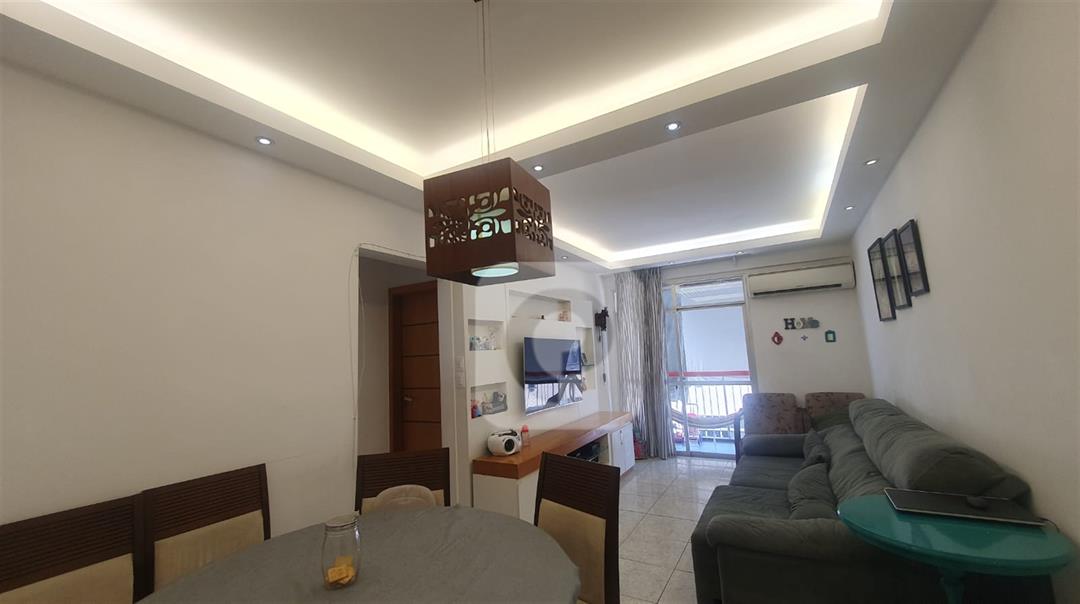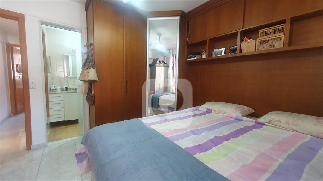 Sala de 2 ambientes com uma pequena varanda, 2 quartos sendo uma suíte, banheiro social, cozinha, dependência completa, porém revertida, vaga coberta e na escritura.