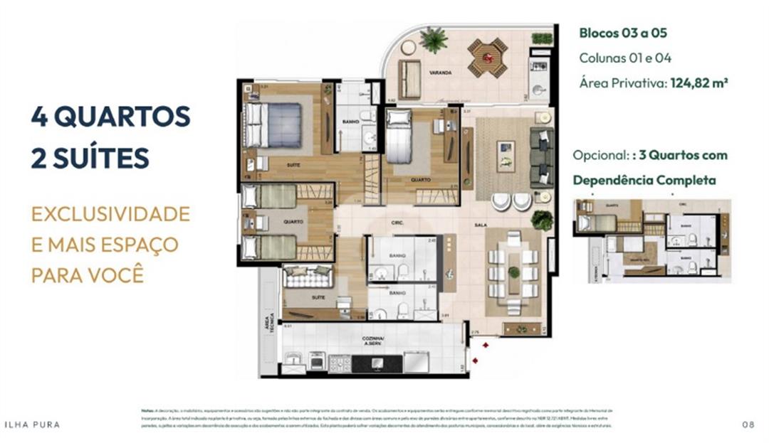 COD AP49320 – ILHA PURA, Cond. ELOS, Bl. LÍRIO , 1ª Locação, 124, 82m², com 4 Quartos (2 suítes), Varandão Gourmet com vista para Lagoa / Pedra da Gavéa ( Melhor Coluna !!), 2 vagas.