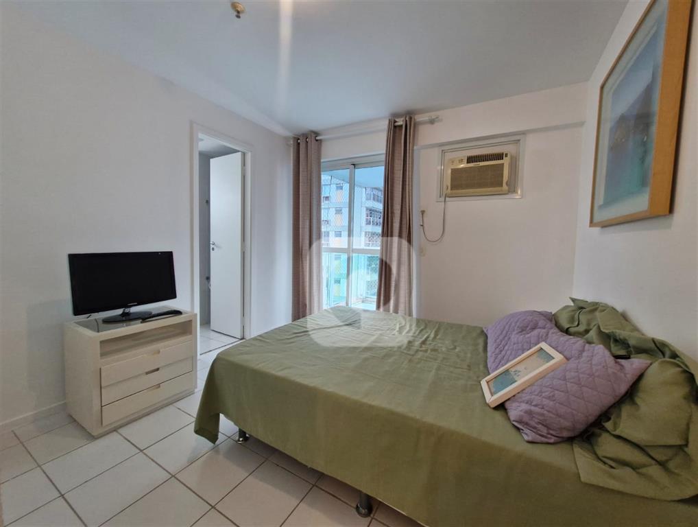 COD AP211685 – Apartamento com vista para o Cristo, Sala com varanda, dois quartos (sendo uma suíte com varanda), banheiro social, cozinha, área de serviço, vaga na escritura e coberta.