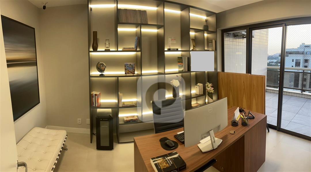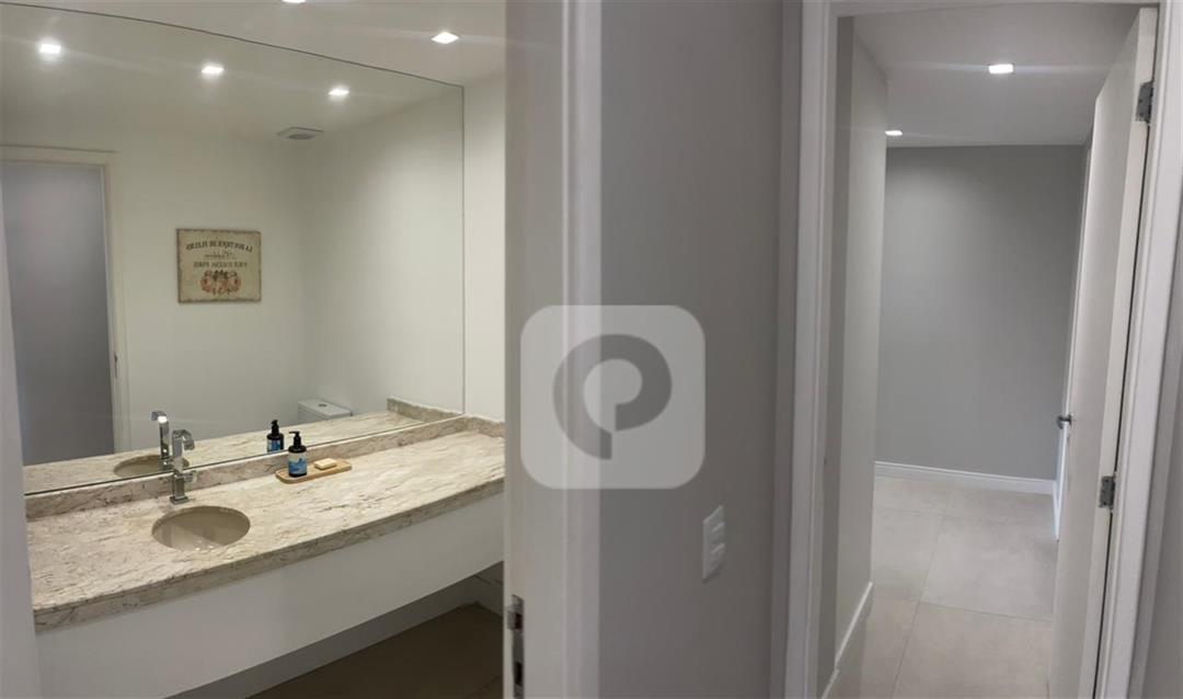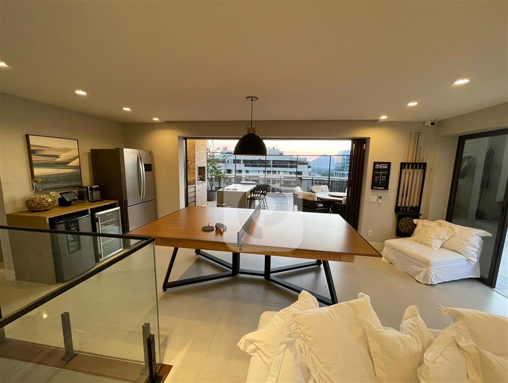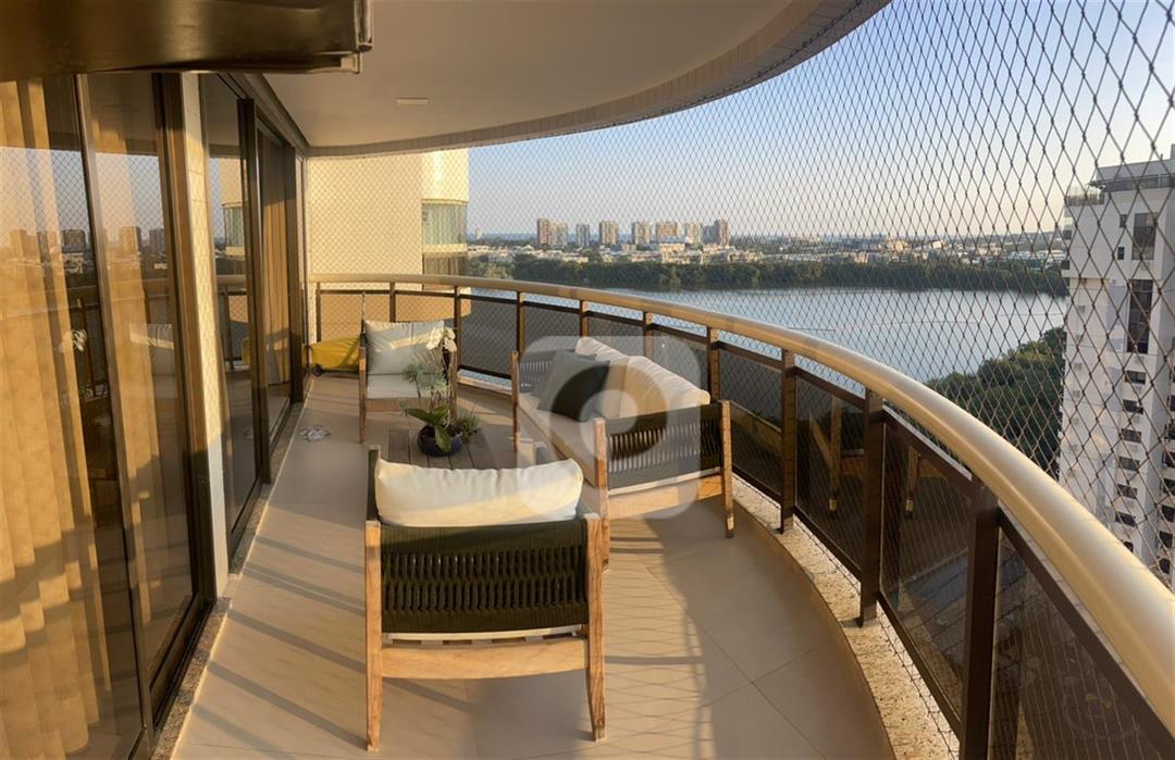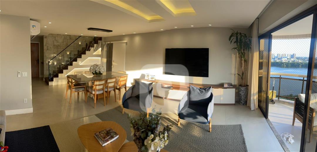 COD CO44864 – Viva o sonho na cobertura duplex dos seus sonhos na Península Green Bay! Finamente mobiliada e decorada com todos os eletrodomésticos de alto padrão incluidos.Com 3 suítes e um escritório elegante, este imóvel oferece o máximo em conforto e sofisticação. Desfrute de um terraço privativo com piscina, churrasqueira, ilha gourmet completa e home cinema, perfeito para momentos inesquecíveis com sua família e amigos. O primeiro pavimento encanta com um salão amplo, varanda com vista deslumbrante da lagoa, lavabo, 3 suítes sendo uma master com closet e copa-cozinha planejada com armários. Recentemente reformado por arquiteto, o apartamento exibe alto padrão de acabamento, 4 vagas de garagem cobertas e uma estrutura de lazer completa com piscinas, saunas, academia, salões de festas e muito mais.