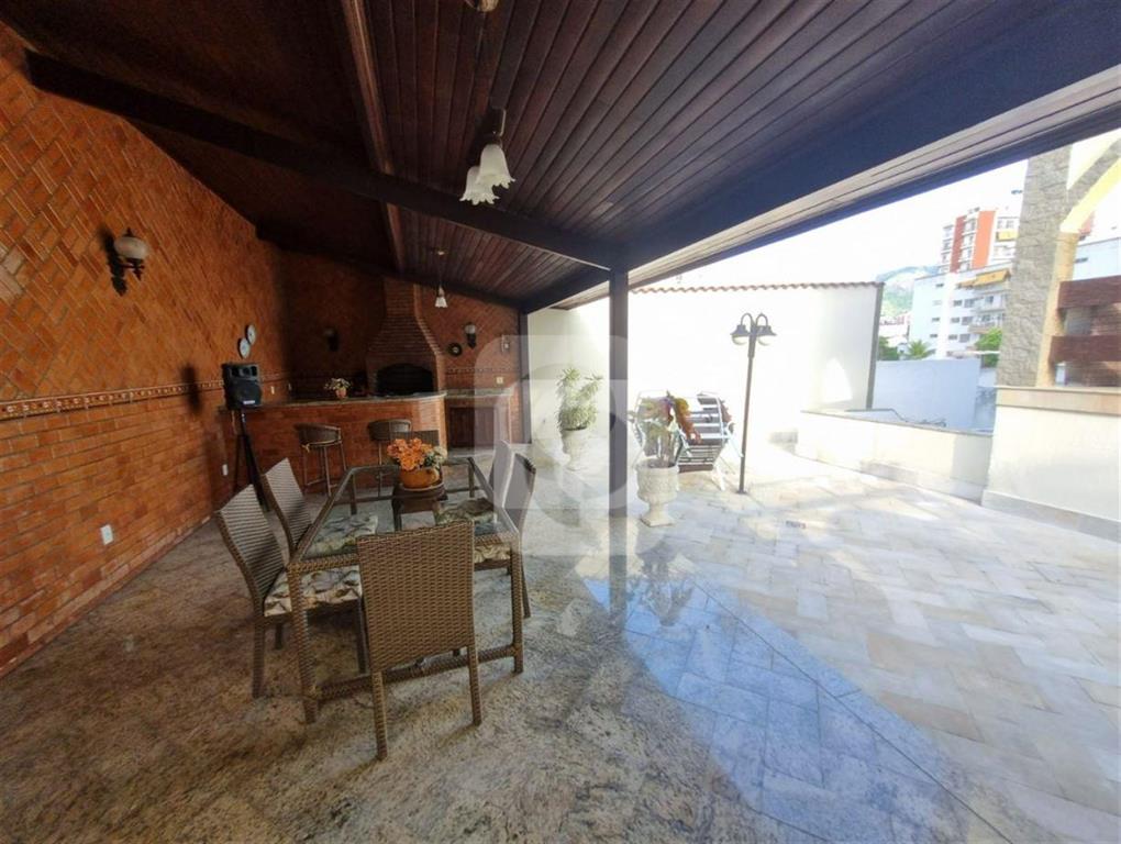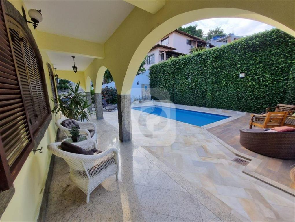 Piscina, churrasqueira,dependencia com dois banheiros, vaga par tres carros.