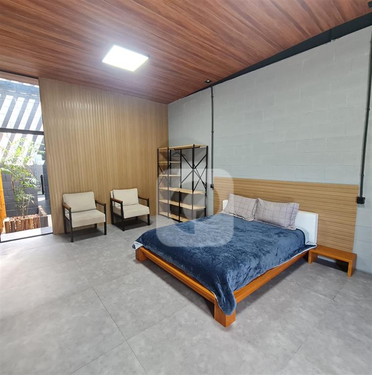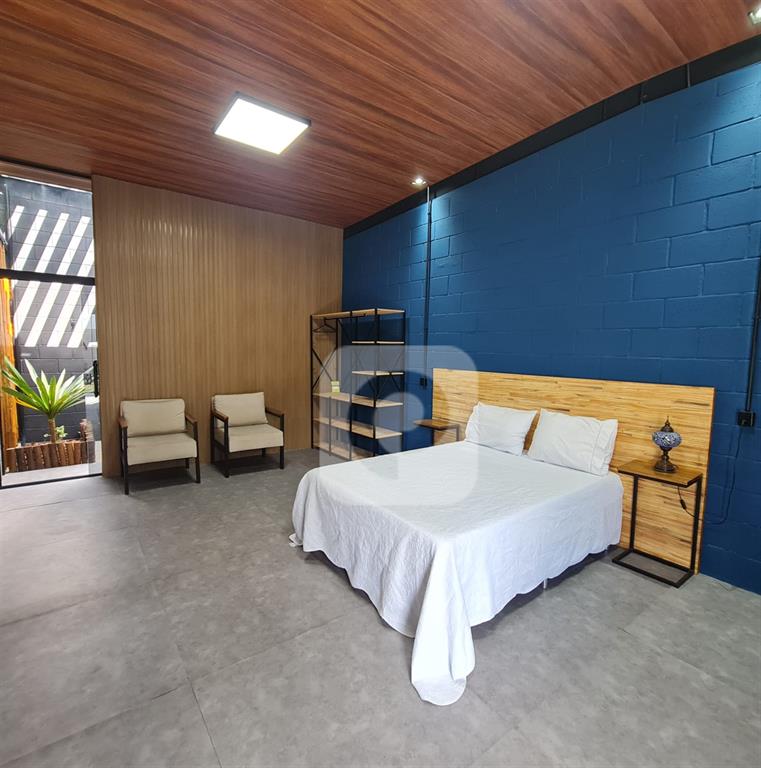 Ambiente moderno e arejado, com pé-direito alto e uma paleta de cores elegante.
